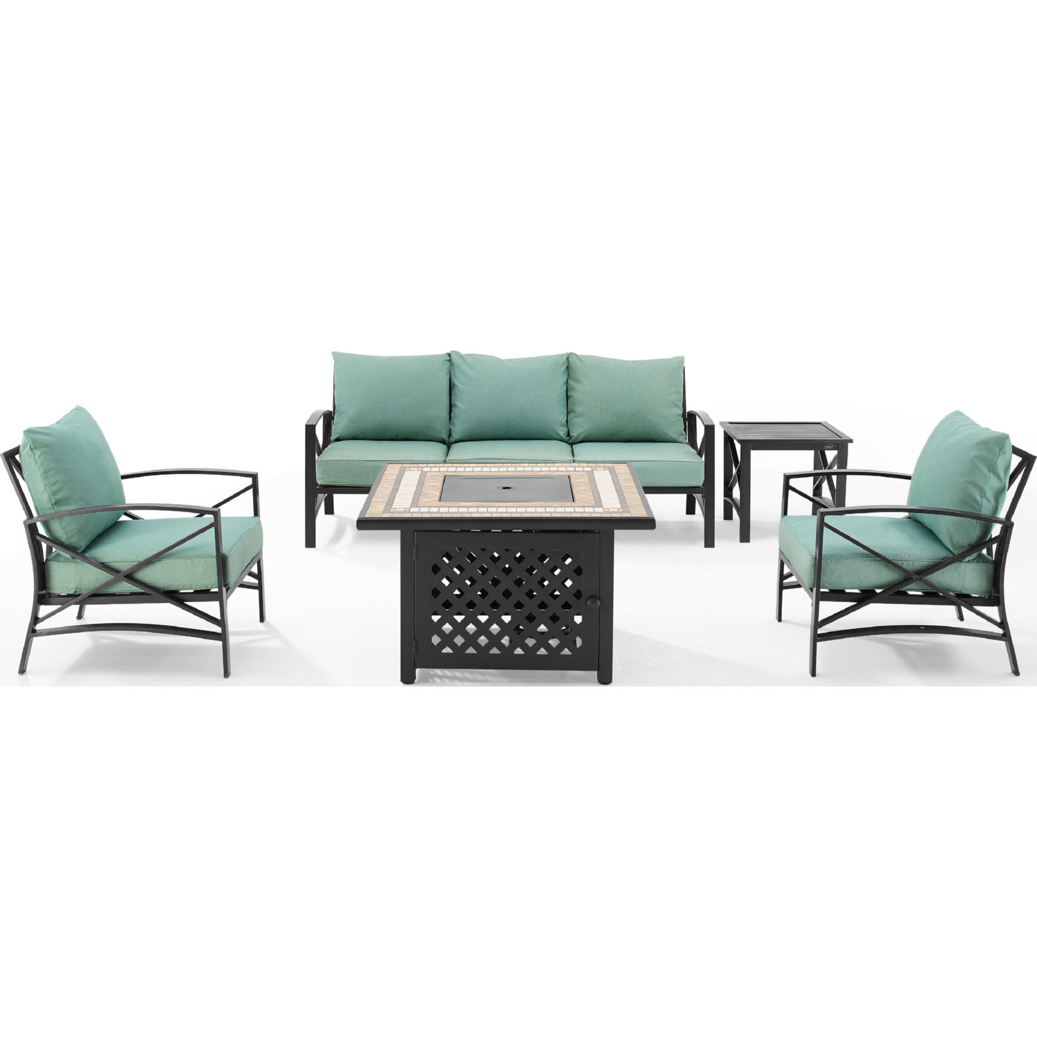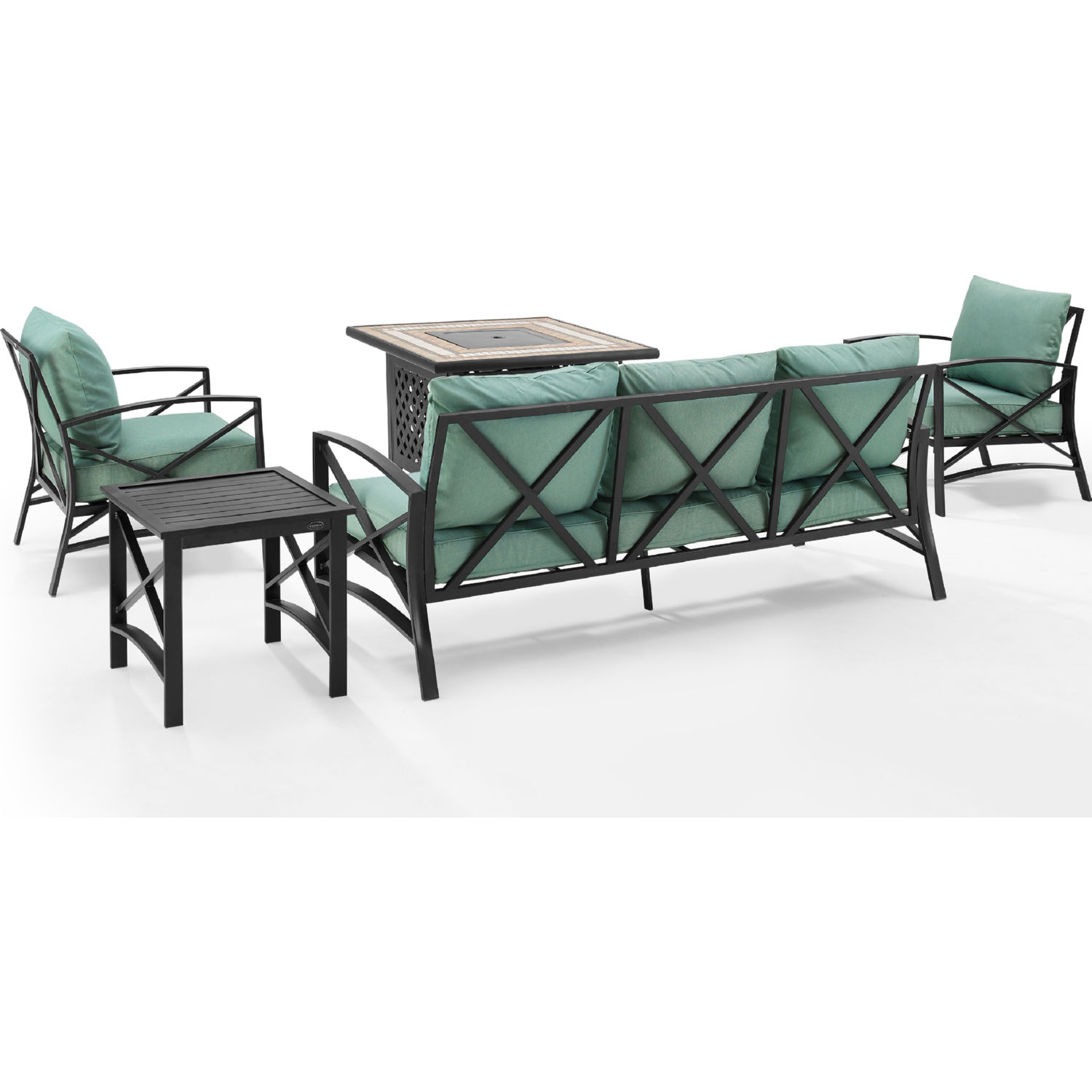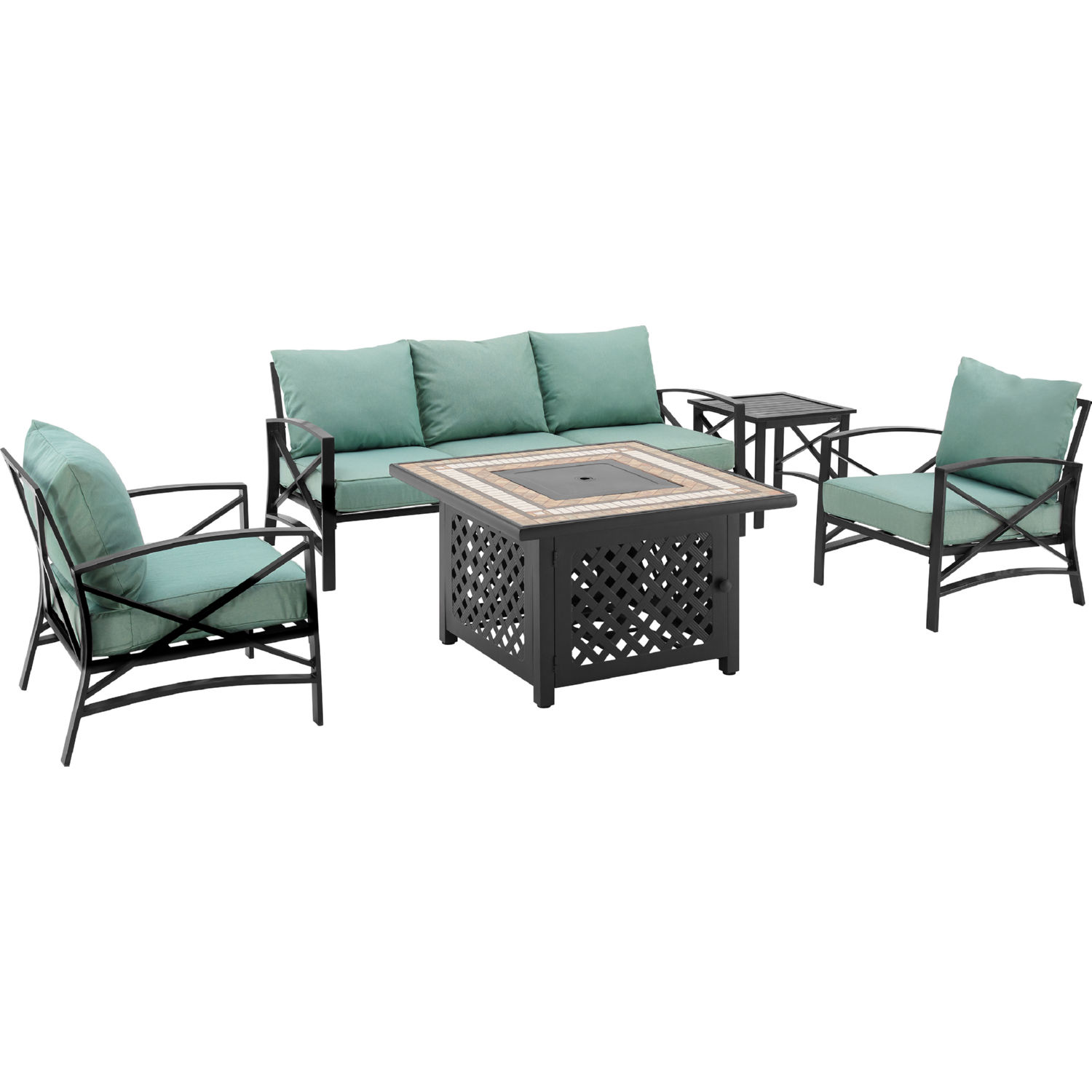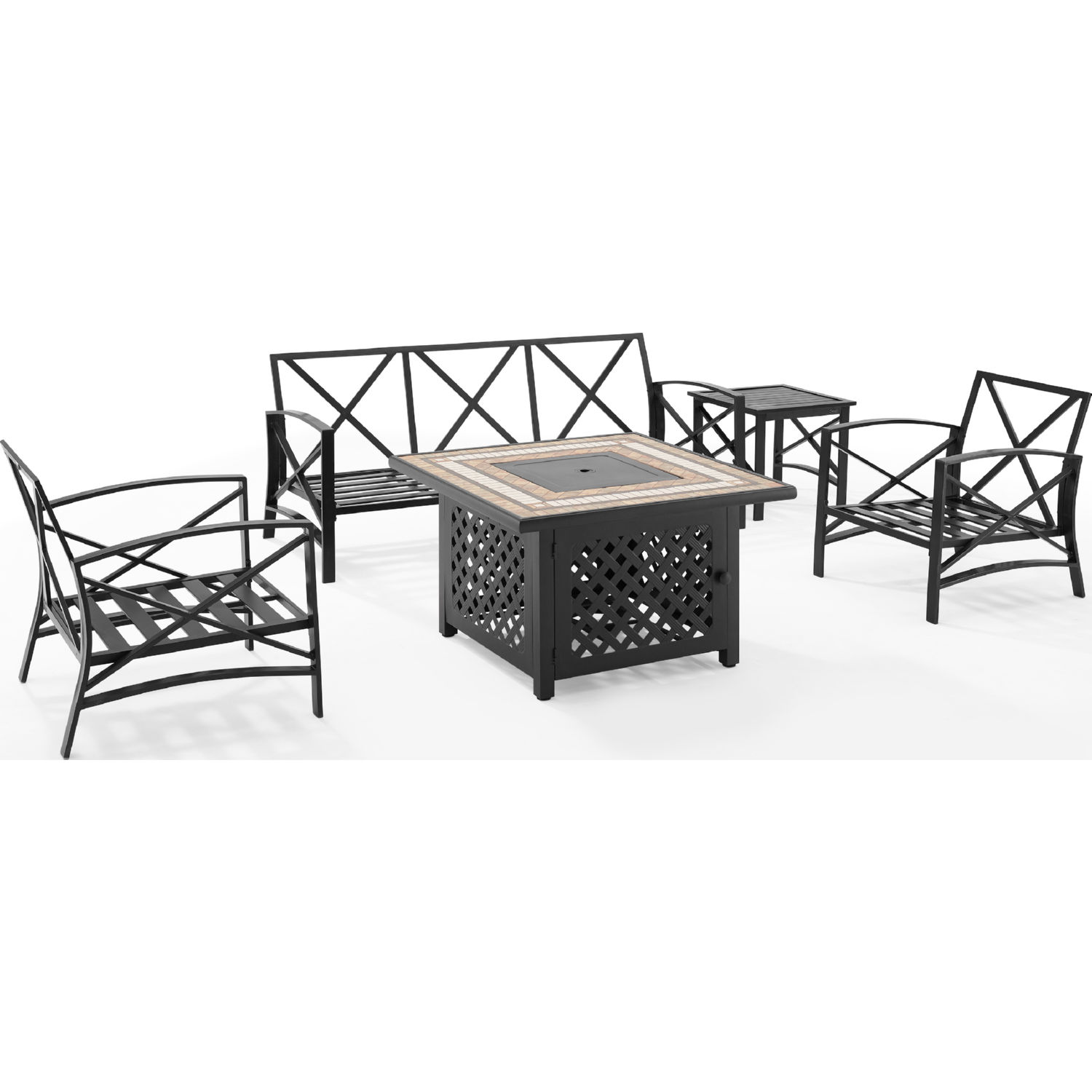 Crosley KO60034BZ-MI Kaplan 5 Piece Outdoor Sofa Tucson Fire Table Set Oil Rubbed Bronze Mist