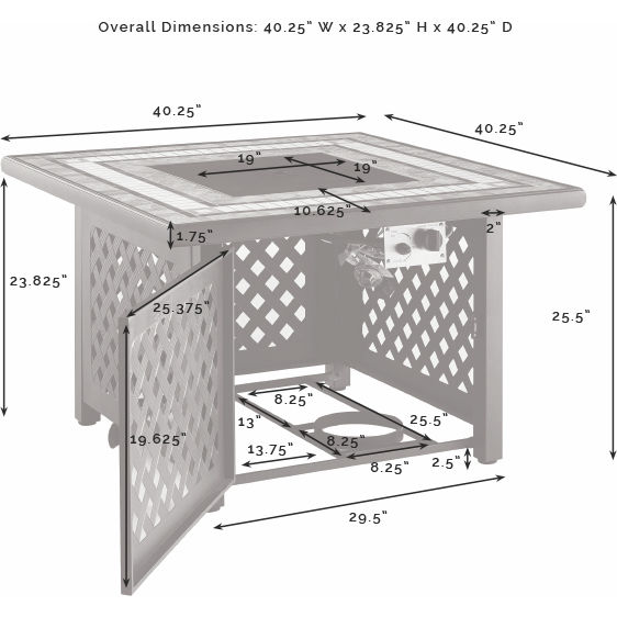 • Fire table comes with a lid and protective covers for the table and propane tank (Propane tank not included)