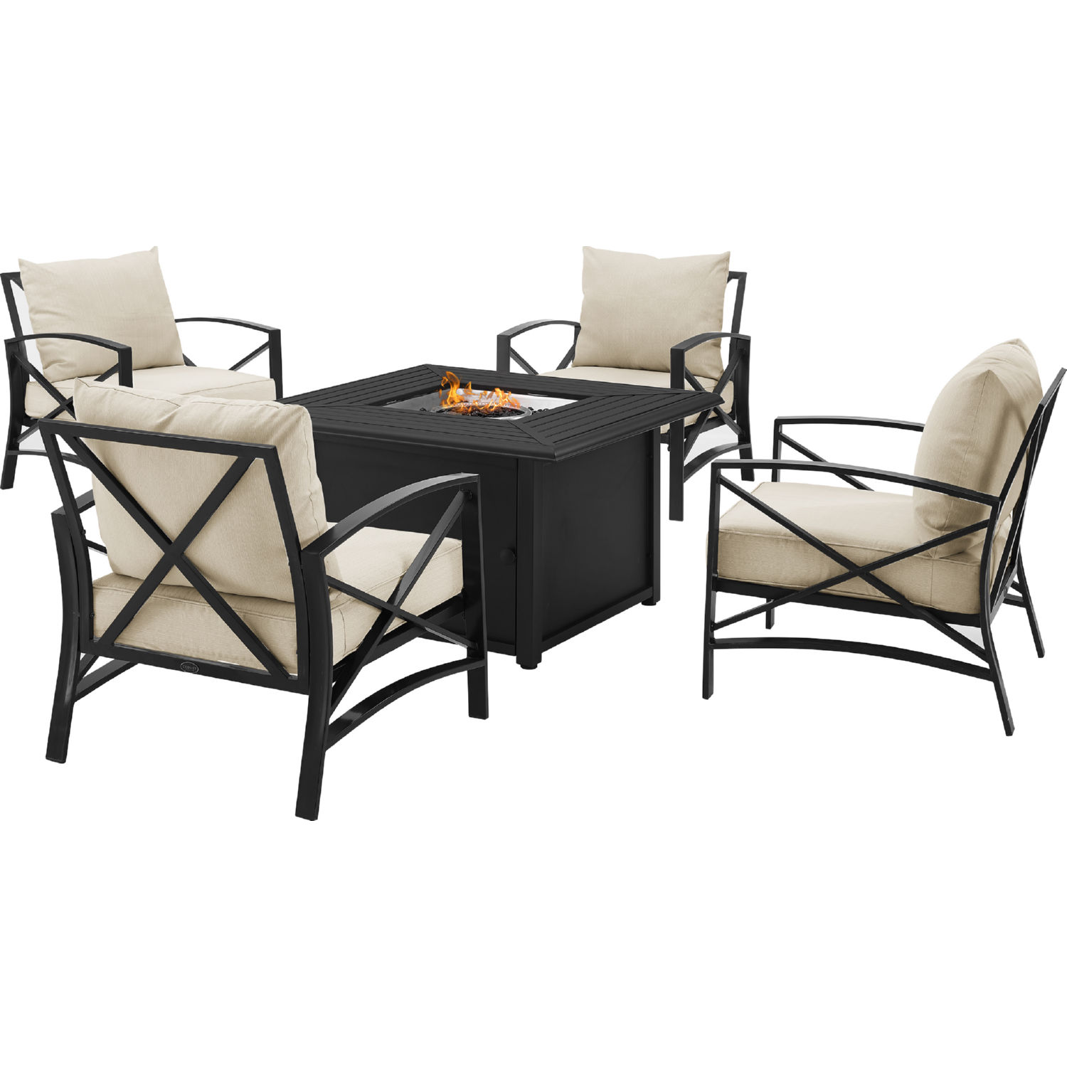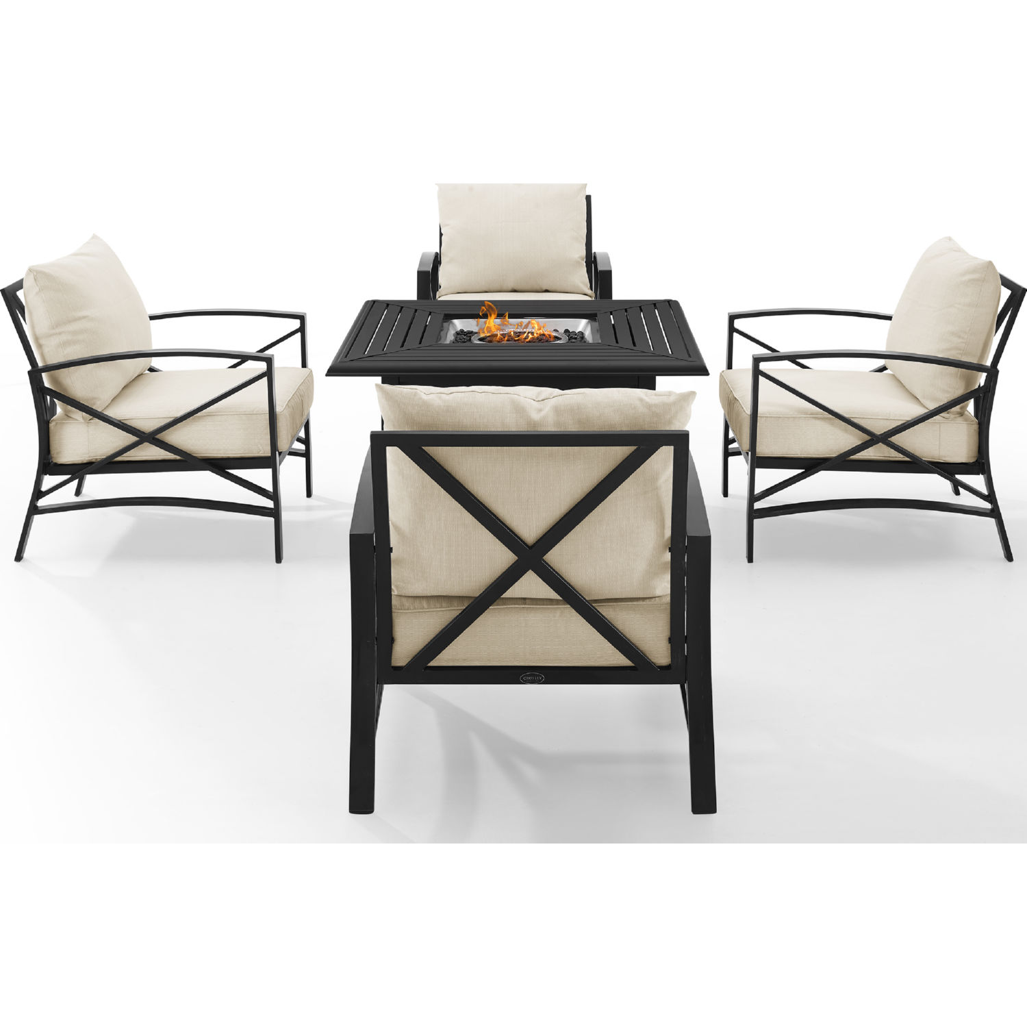 Crosley Kaplan 5 Piece Outdoor 4 Arm Chair & Dante Fire Table Set in Oil Rubbed Bronze & Oatmeal
