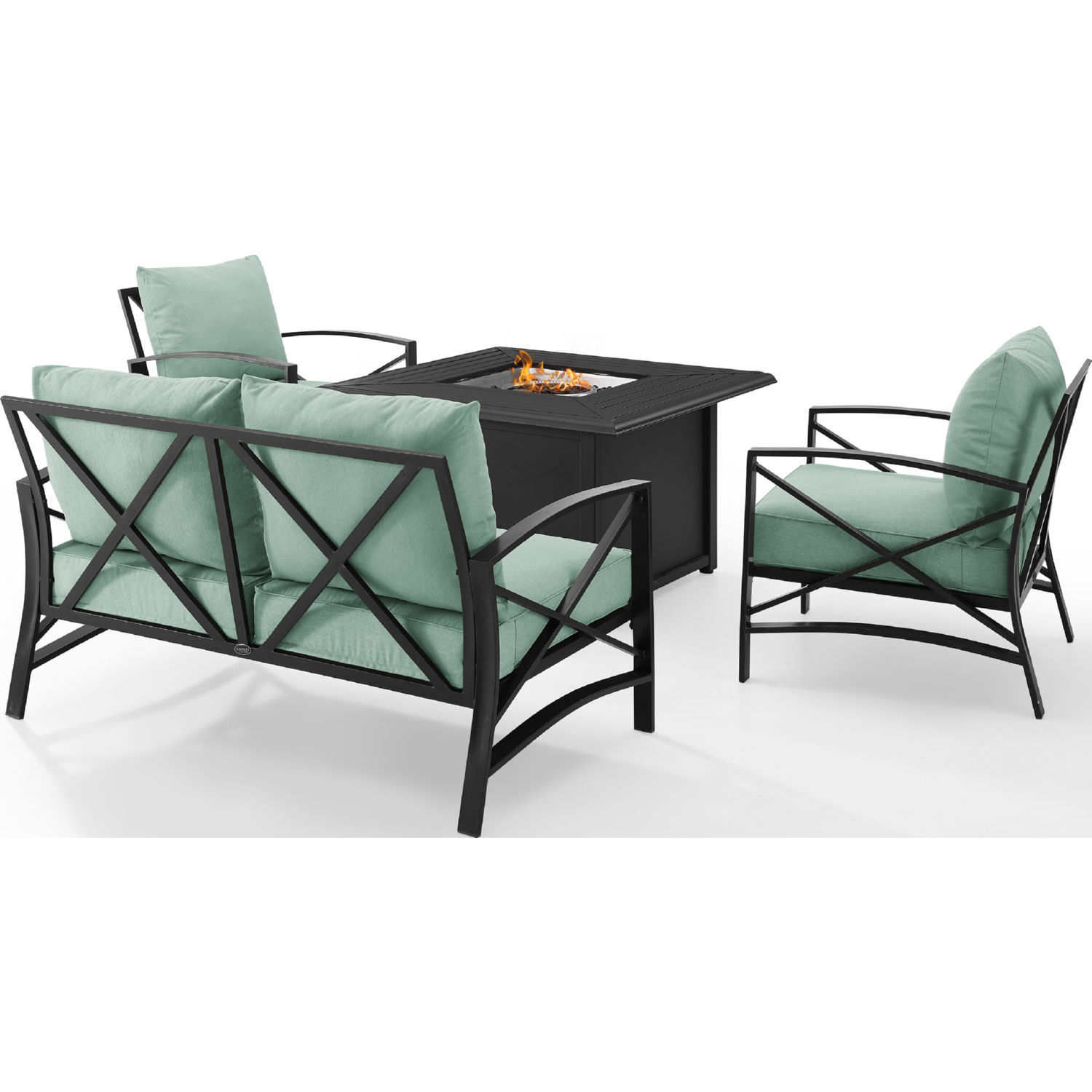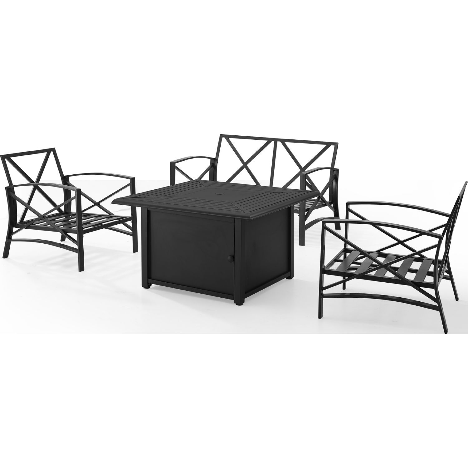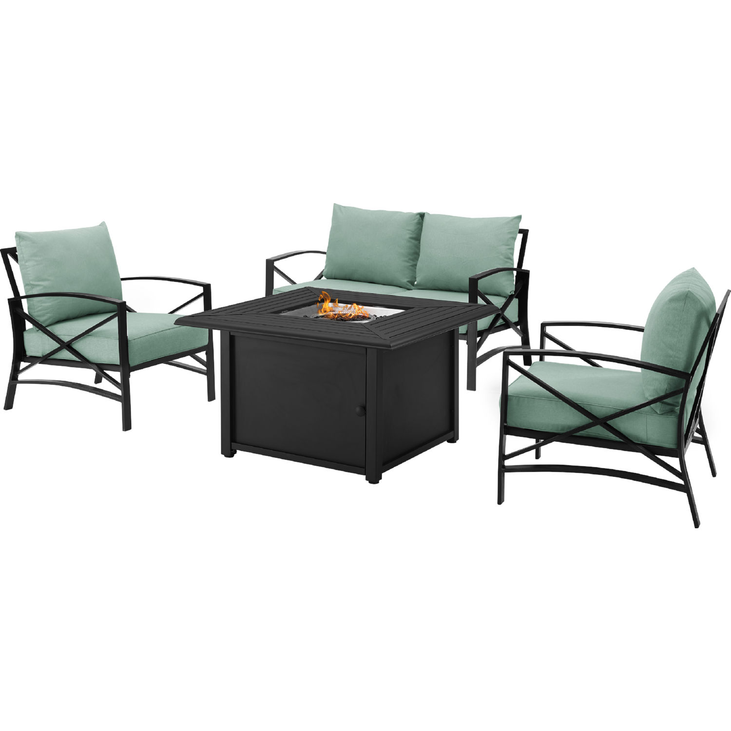 Crosley KO60037BZ-MI Kaplan 4 Piece Outdoor Loveseat Dante Fire Table Set Oil Rubbed Bronze Mist