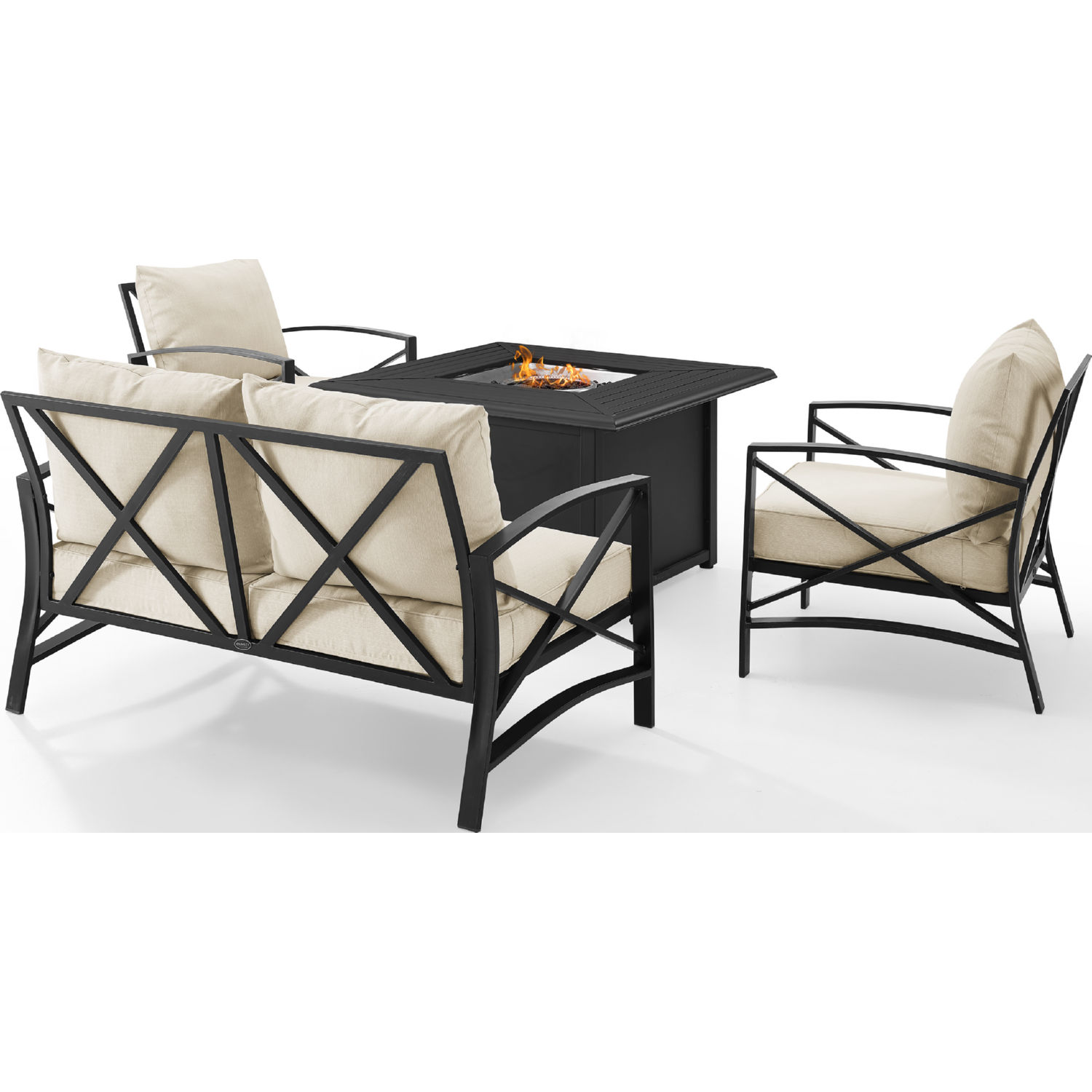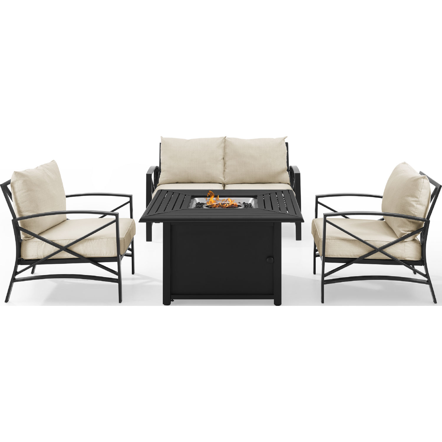 Crosley Kaplan 4 Piece Outdoor Loveseat & Dante Fire Table Set in Oil Rubbed Bronze & Oatmeal