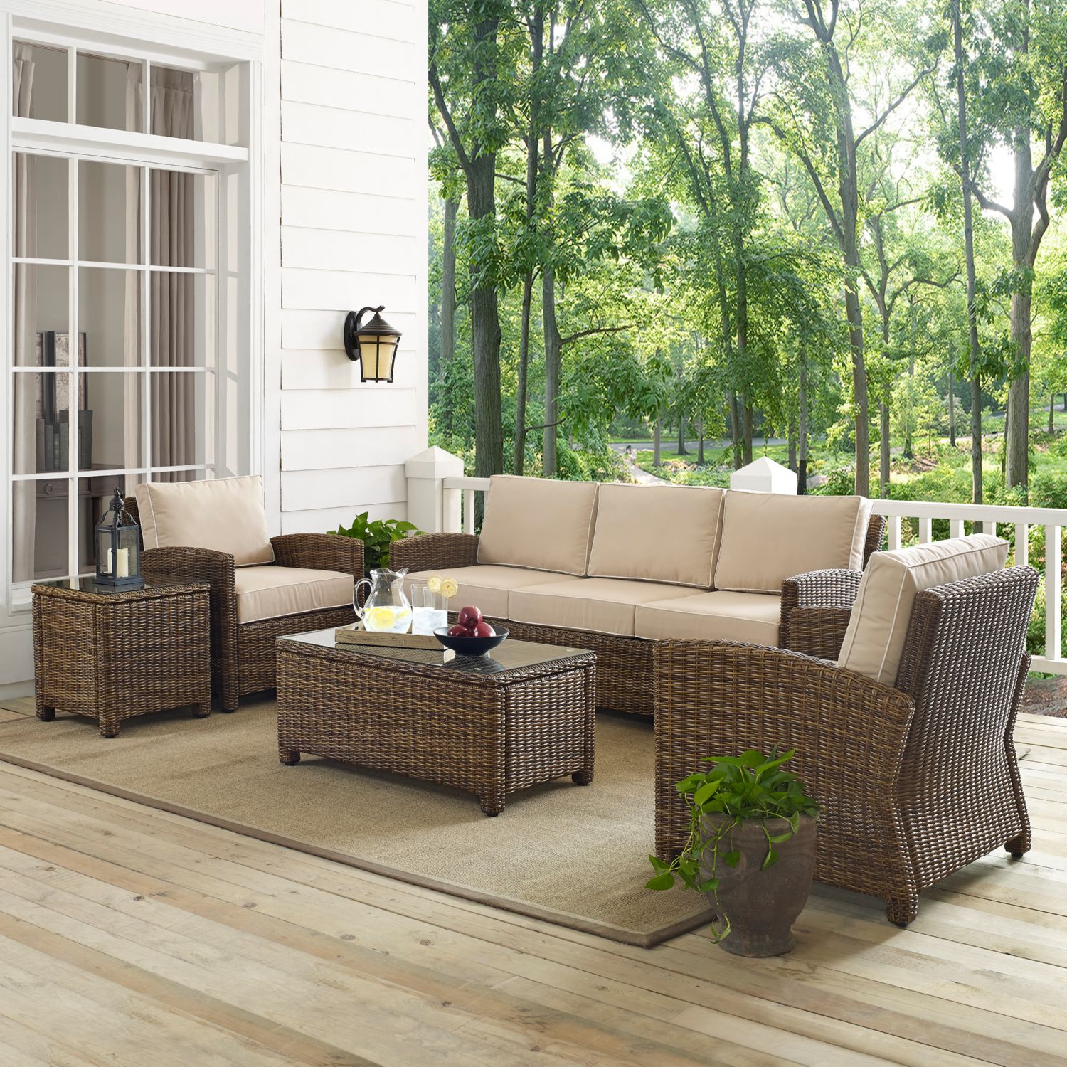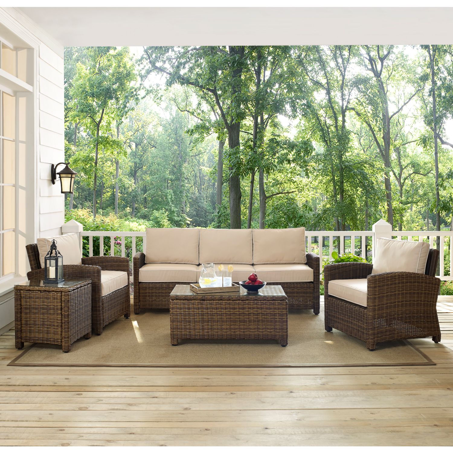 Crosley KO70051WB-SA Bradenton 5 Piece Outdoor Sofa Set Resin Wicker Sand Cushions