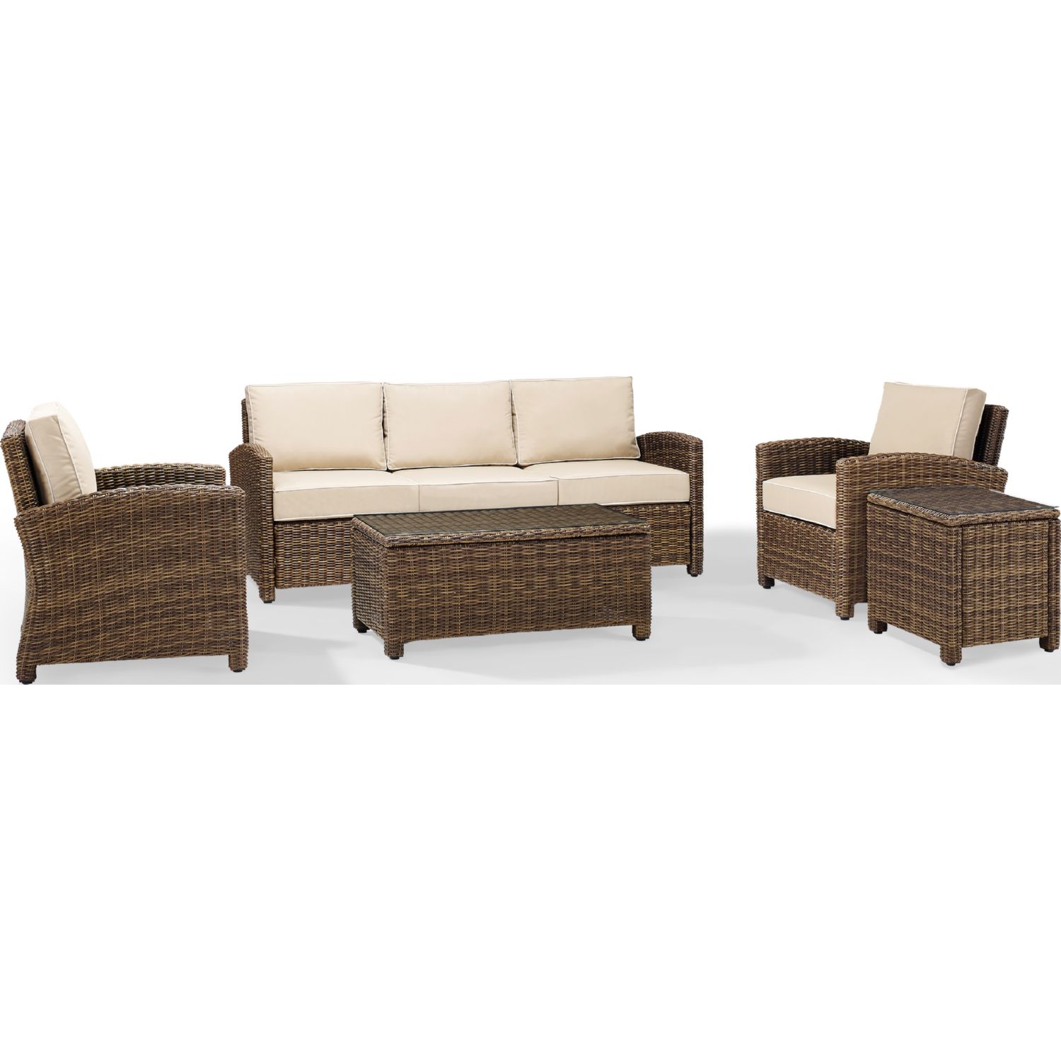 Crosley Bradenton 5 Piece Outdoor Sofa Set in Resin Wicker & Sand Cushions