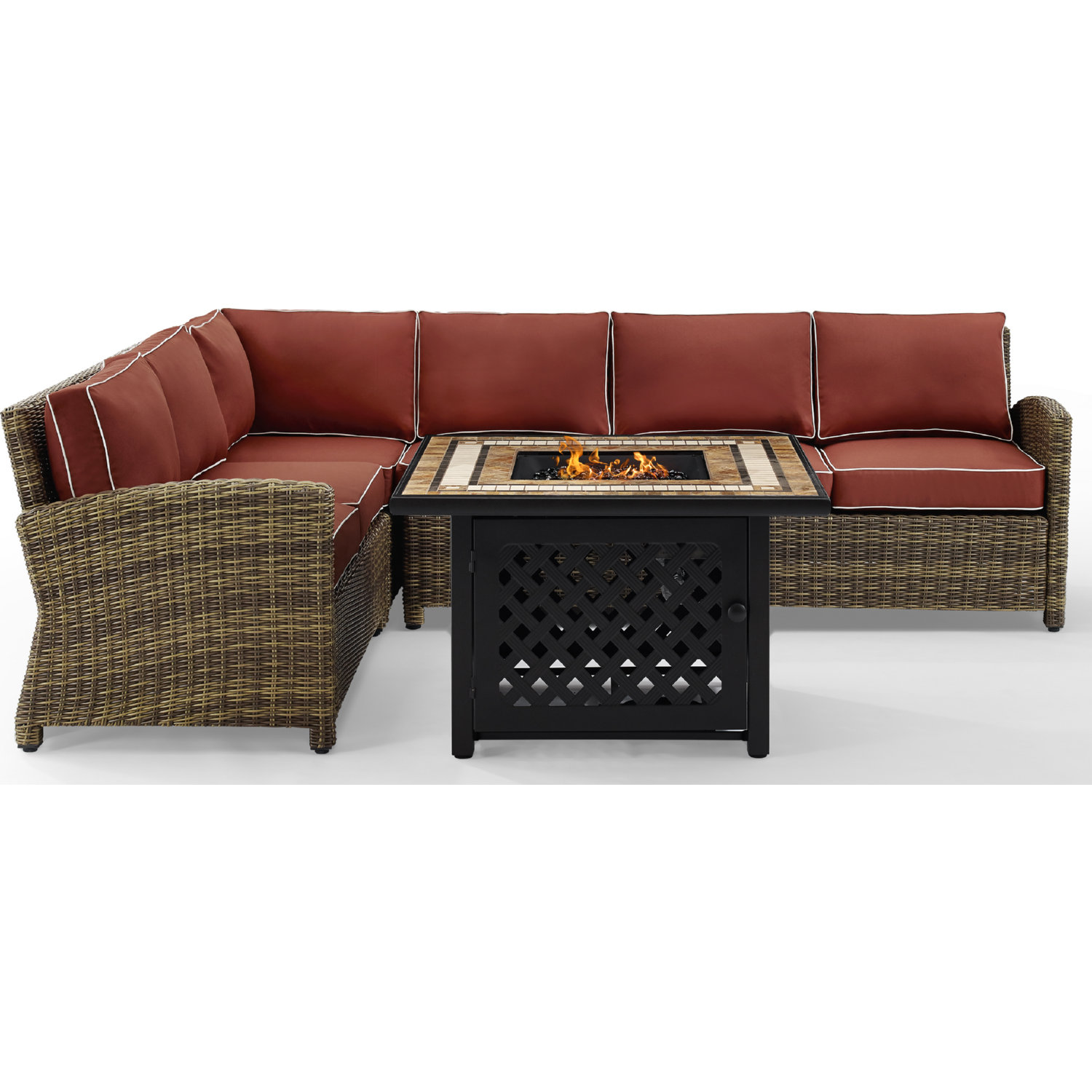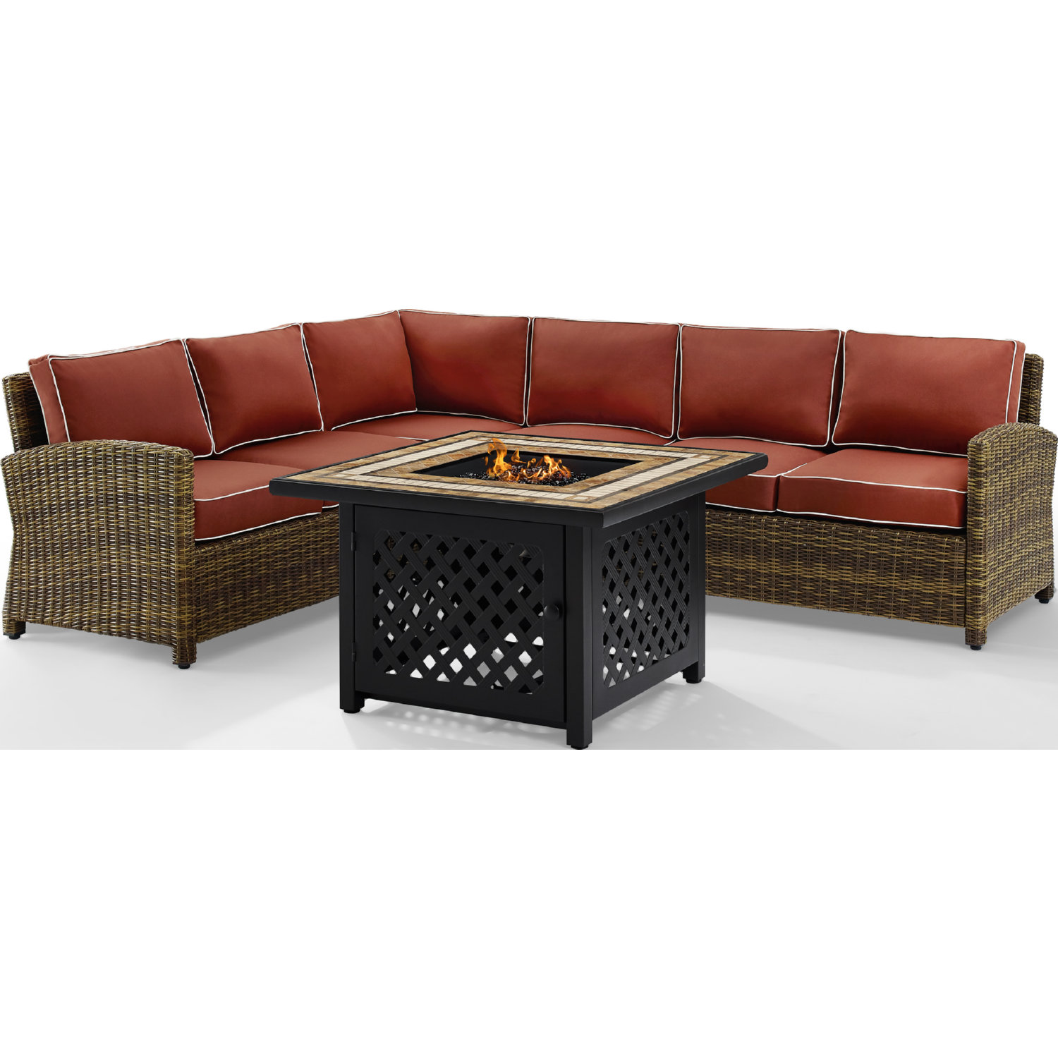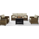 • Set Includes: Right Corner Loveseat, Left Corner Loveseat, Corner Chair, Center Chair & Fire Table