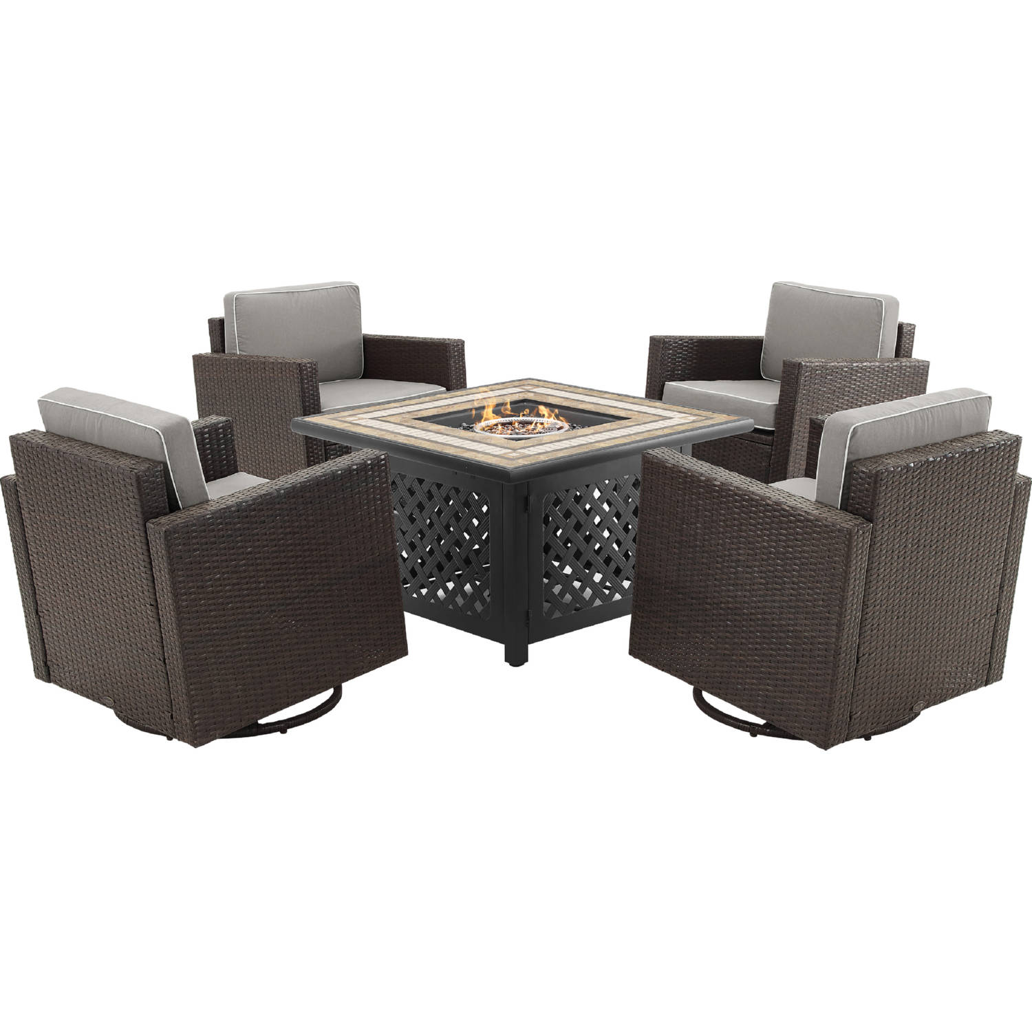Crosley KO70600BR-GY Palm Harbor 5 Piece Outdoor Rocking Chairs Tucson Fire Table Set Gray Brown