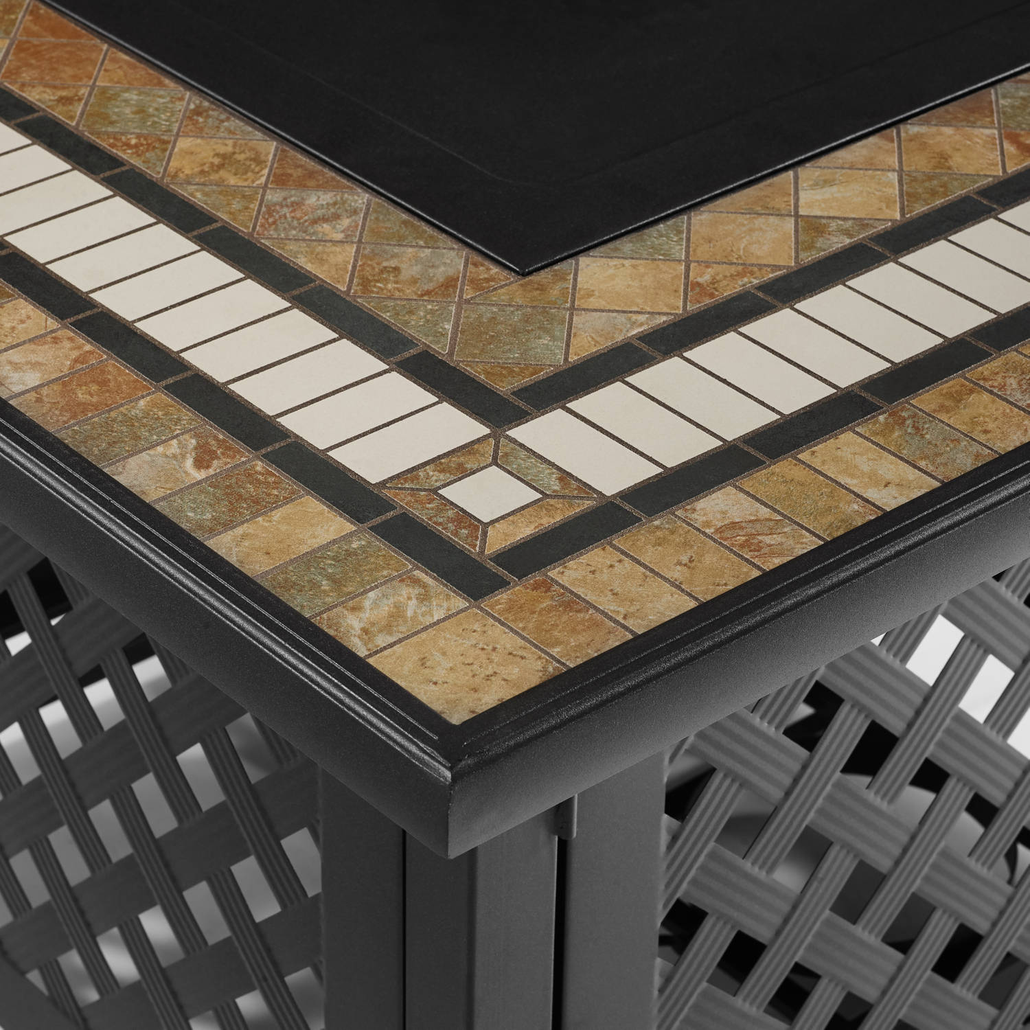 • Fire table has a tiled stone top and comes with 10 lbs. of black glass fire beads