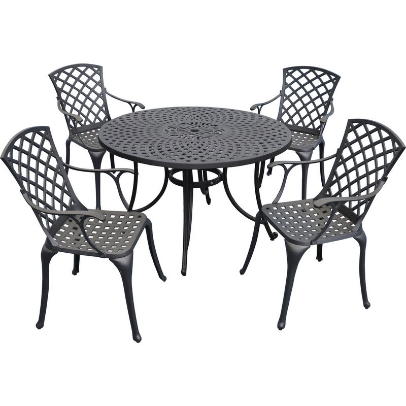Crosley KOD6002BK Sedona 5 Piece Outdoor 48" Dining Set High Back Arm Chairs Black Aluminum