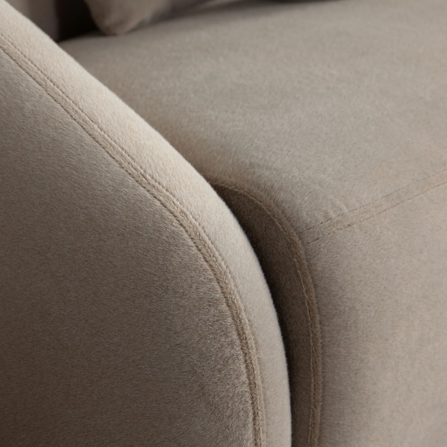 • Covered in a soft to the touch faux alpaca fabric in Fawn color
