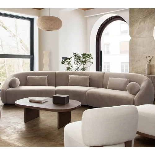 Diamond Sofa Lena 3 Piece Sectional Sofa in Fawn Faux Alpaca Fabric