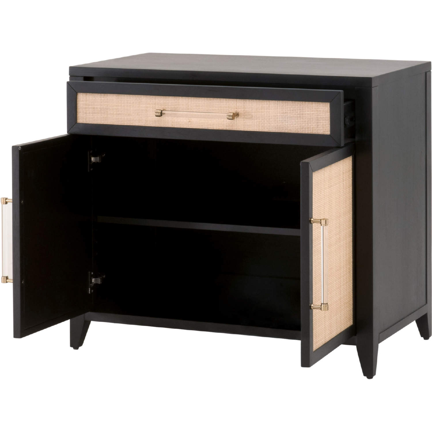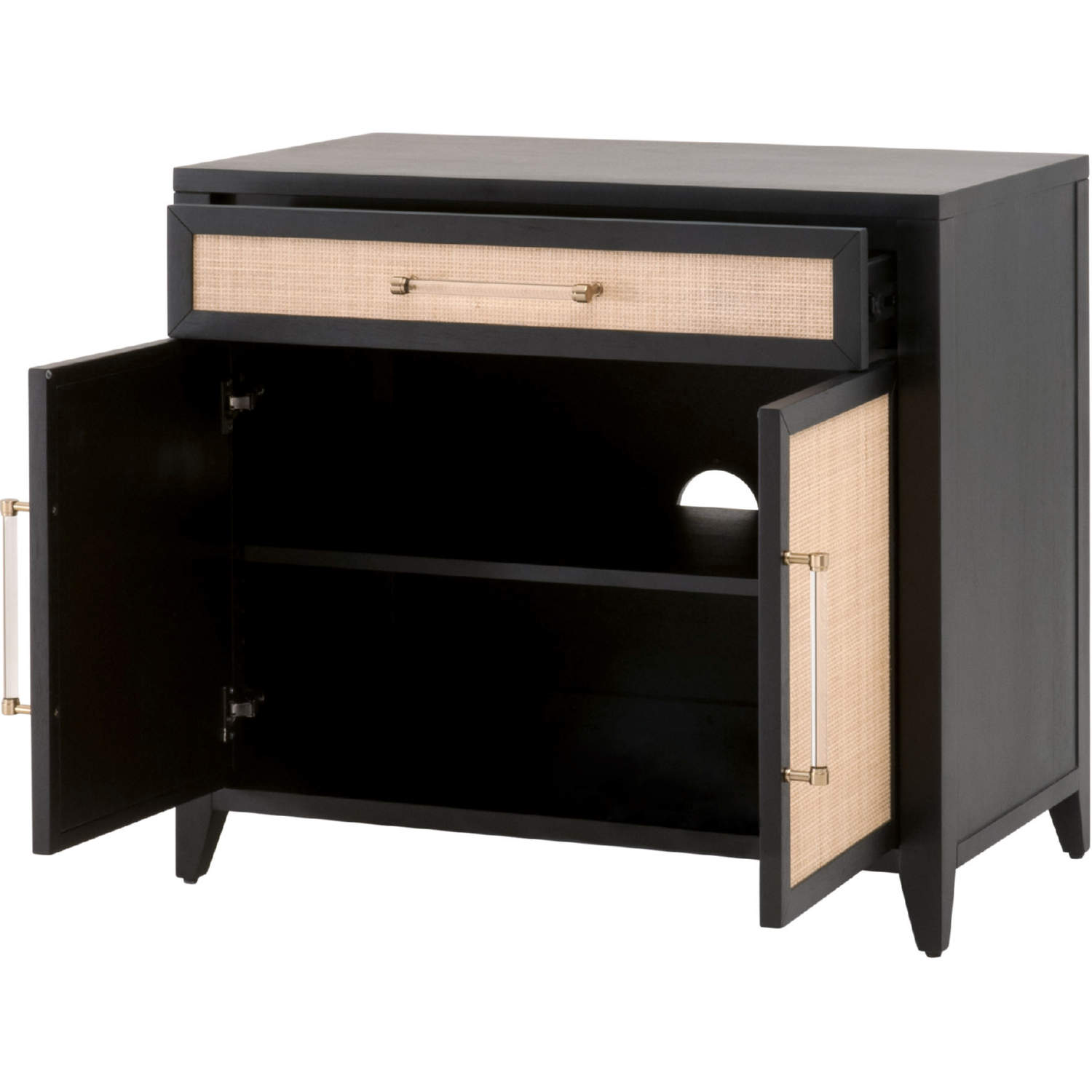 Essentials for Living 6146.B-BLK/NAT Holland Media Chest Brushed Black Acacia Natural Rattan