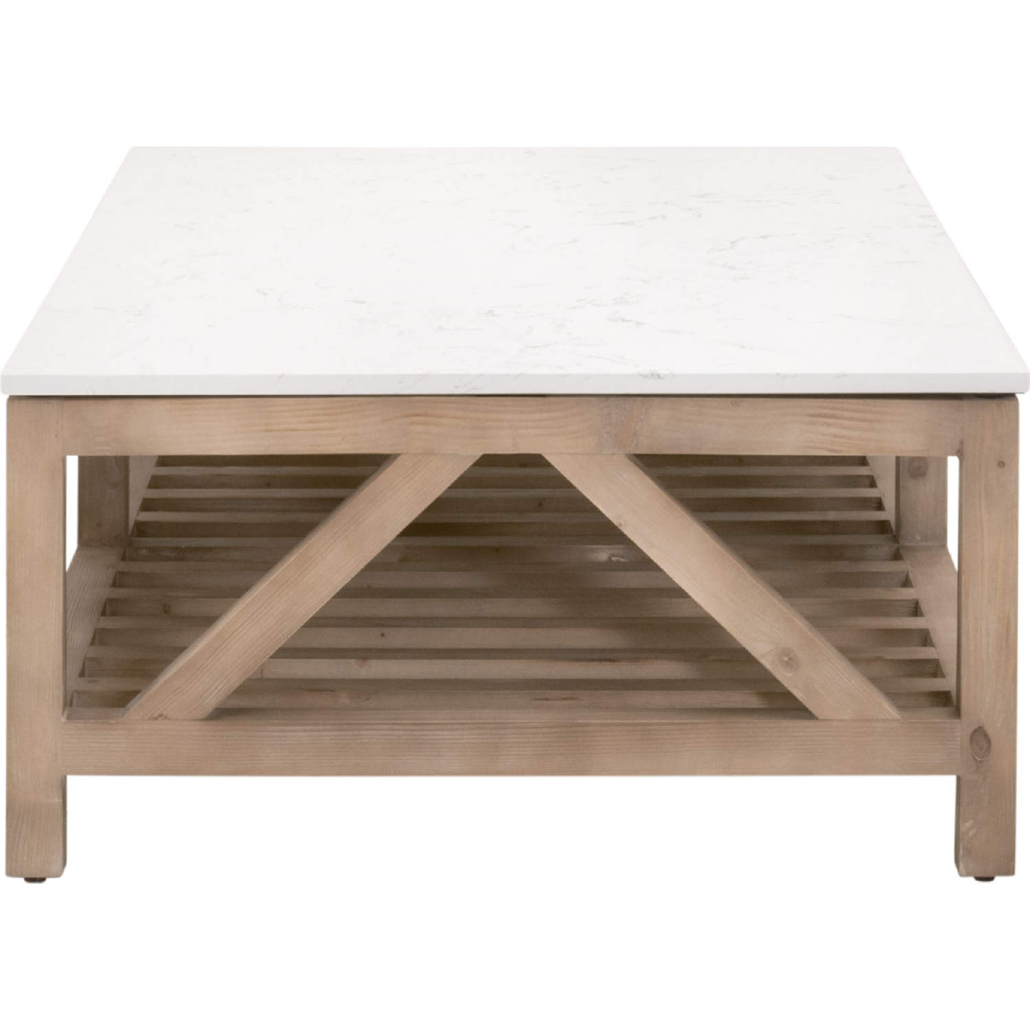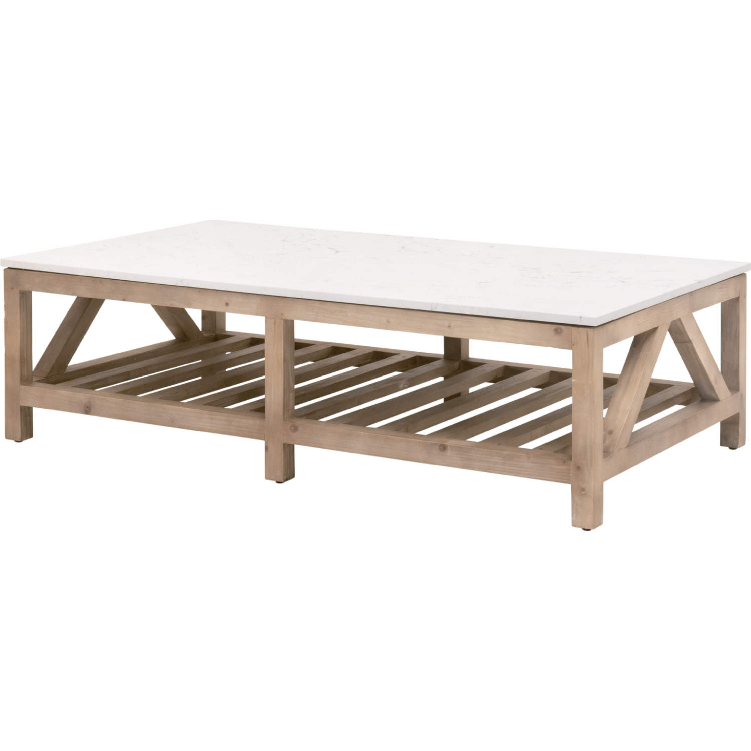 Essentials for Living Spruce Coffee Table in Smoke Gray Pine & White Quartz 8019.SGRY-PNE/WHTQ