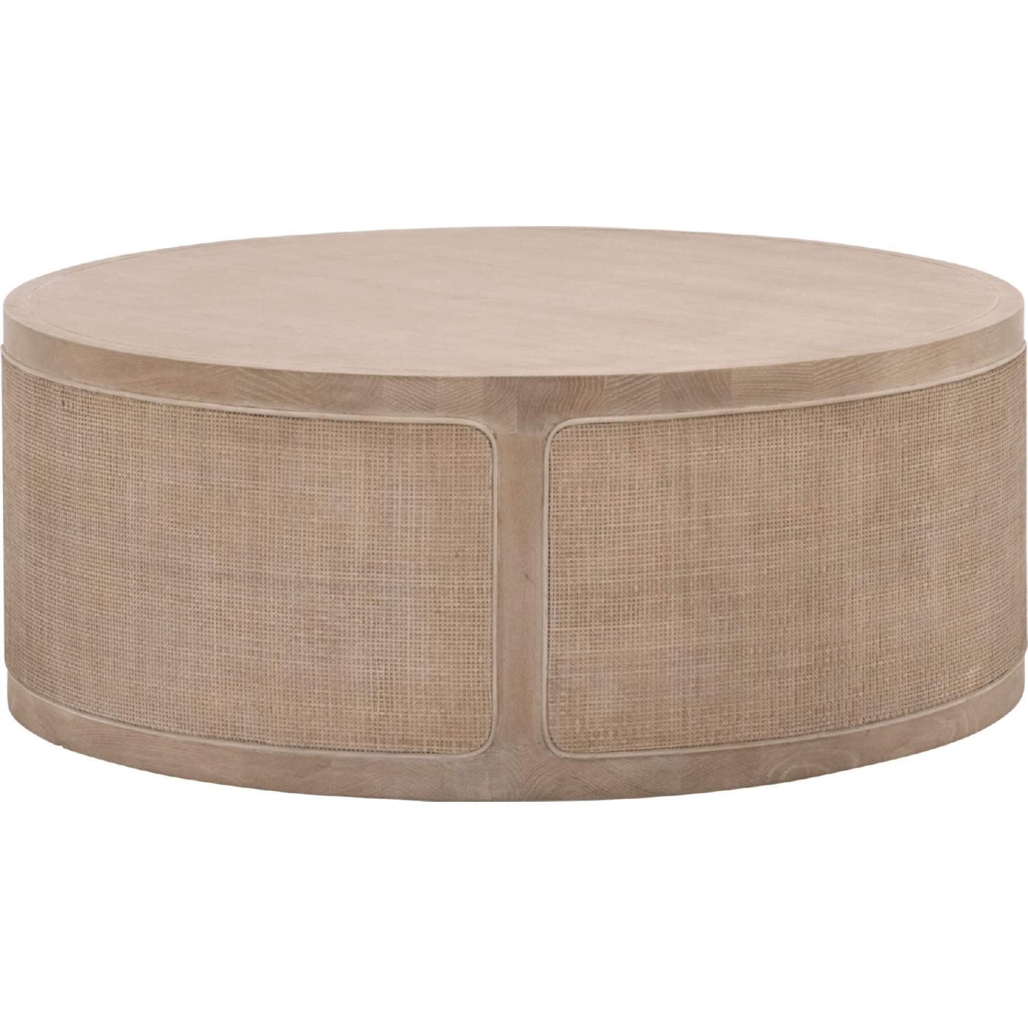 Essentials for Living Cane Round Coffee Table in Smoke Gray Reclaimed Oak & Cane 8091.SGRY-OAK/CN