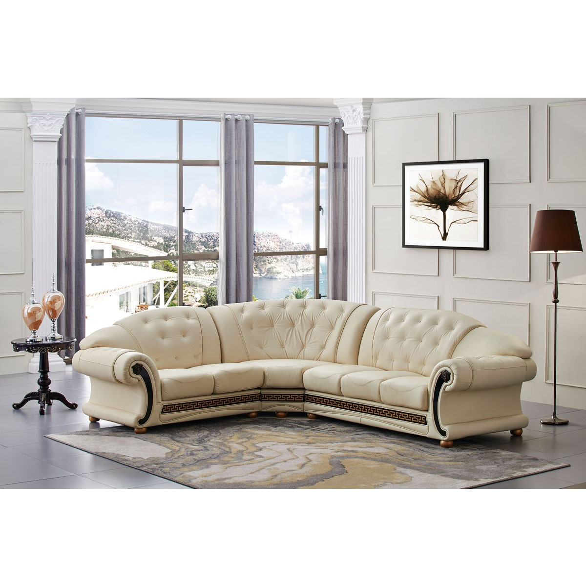 ESF Extravaganza Collection APOLOSECTLEFTIVORY Apolo Sectional Sofa Left Facing Tufted Ivory Leather