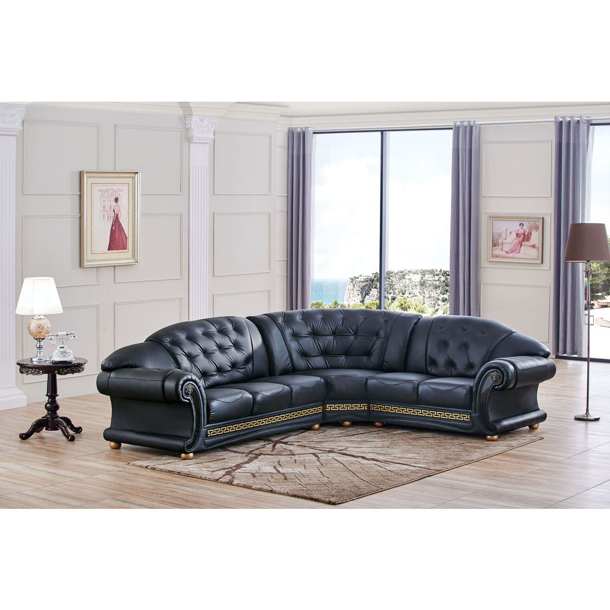 ESF Extravaganza Collection APOLOSECTRIGHTBLAC Apolo Sectional Sofa Right Facing Tufted Black Leather