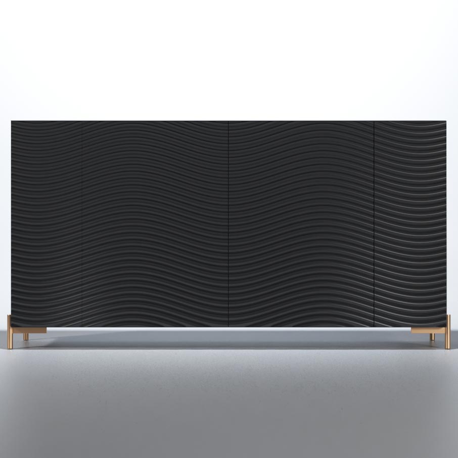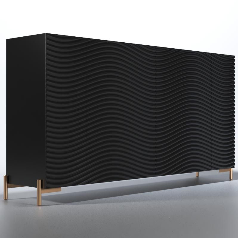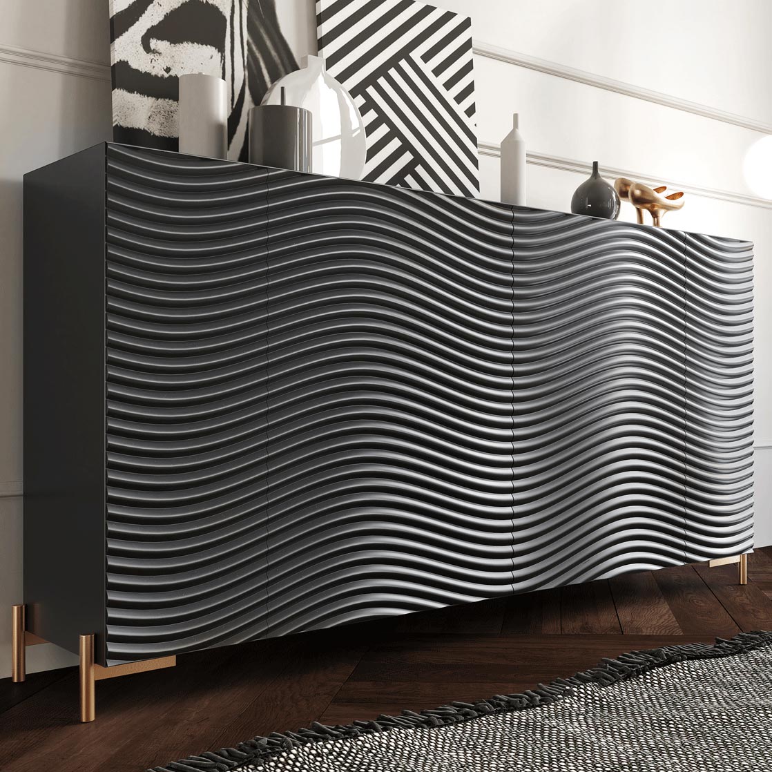 Franco Spain WAVEBUFFETGREY Wave 4 Door Buffet Light Dark Grey Gold