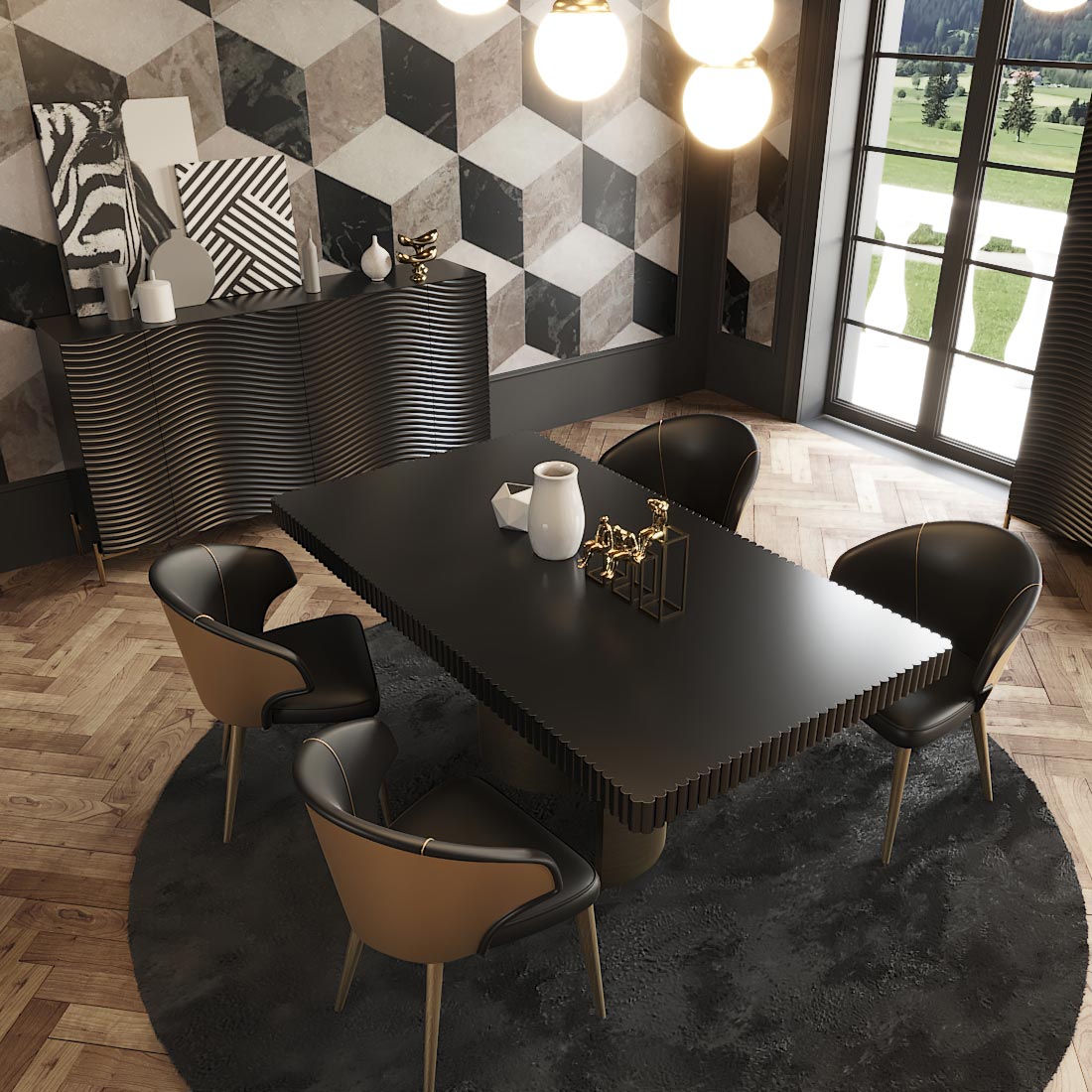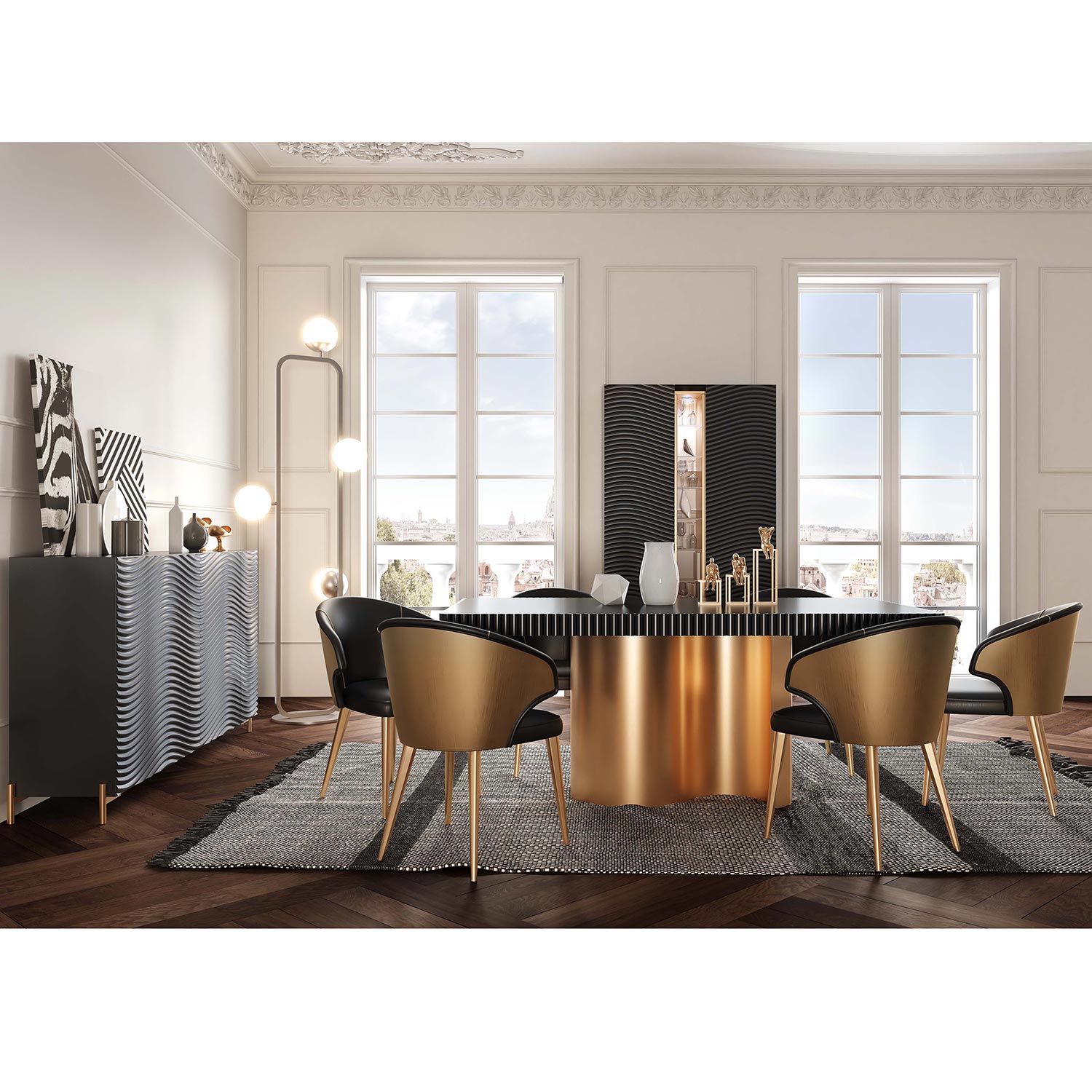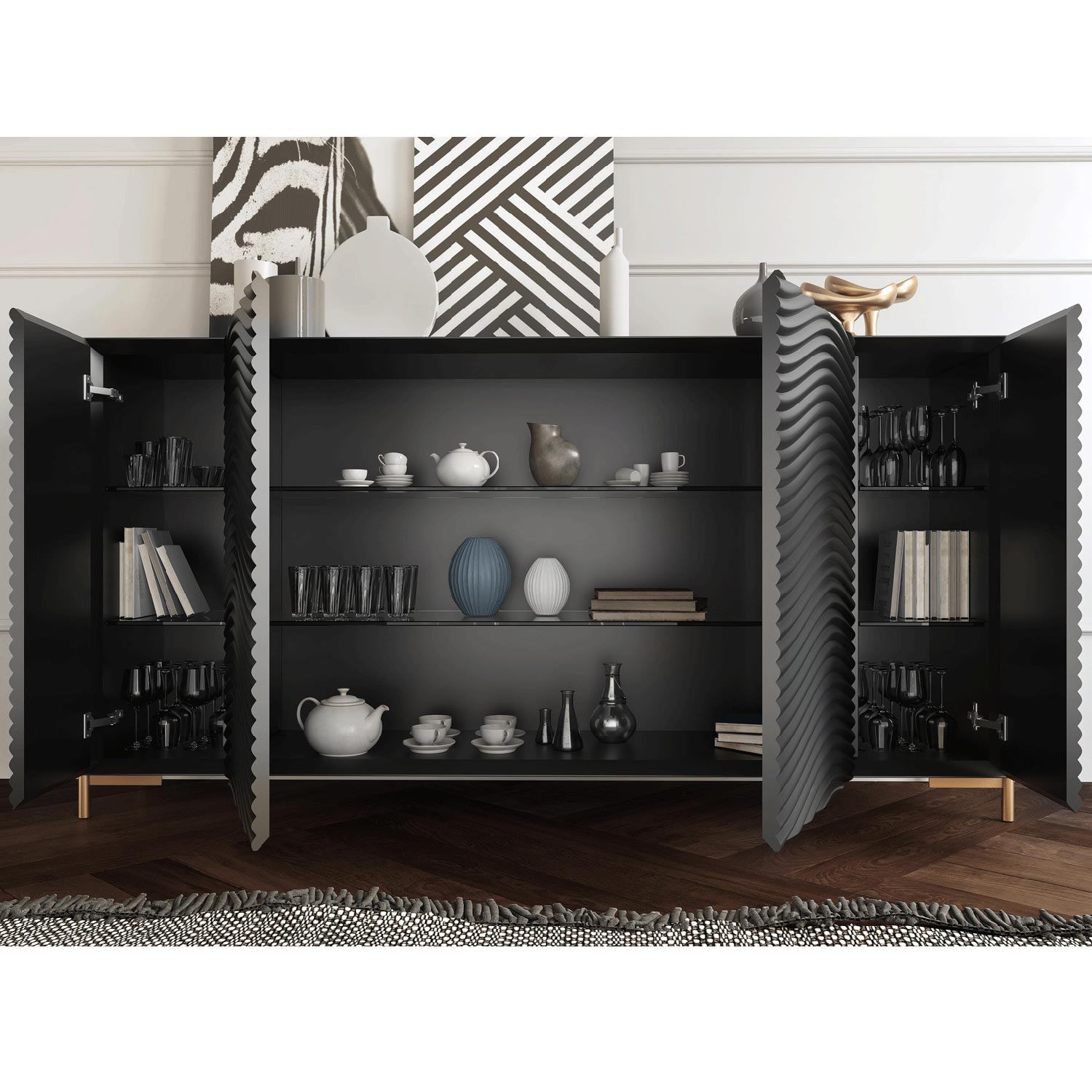 Franco Spain Wave 4 Door Buffet with Light in Dark Grey & Gold
