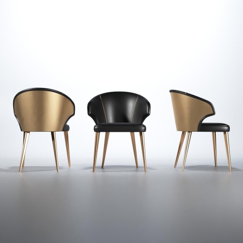 Franco Spain Wave Dining Chair in Dark Grey & Gold Eco Leather & Metal