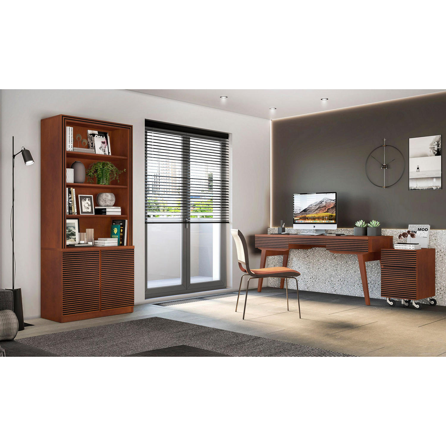 Furnitech 66" Mid Century Modern Writing Desk in Cognac Finish Brazilian Cherry