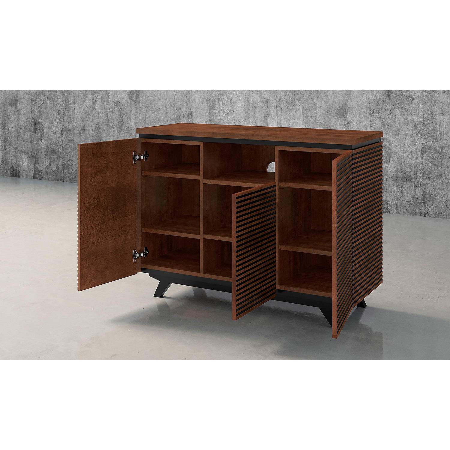 • 3 separate storage compartments w/ 6 adjustable shelves behind panel doors