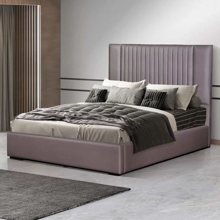 J and M Furniture Nara Queen Storage Bed Stone Eco Leather