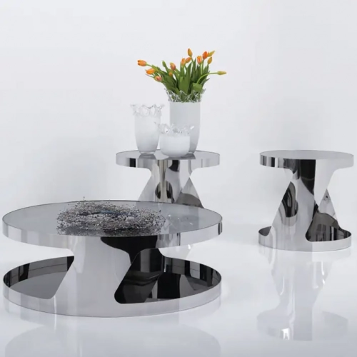 J and M Furniture Amore Modern End Table in Chrome with Black Glass Top