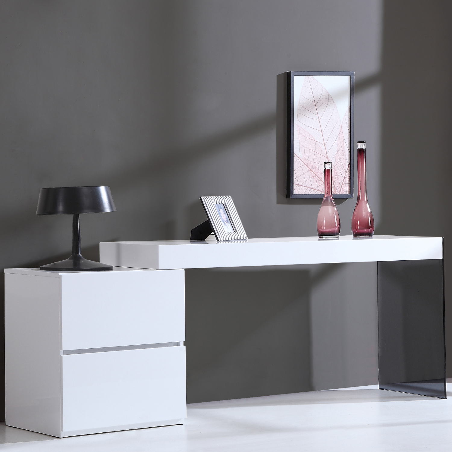 J and M Furniture Mia Modern Office Desk in High Gloss White