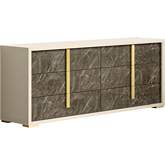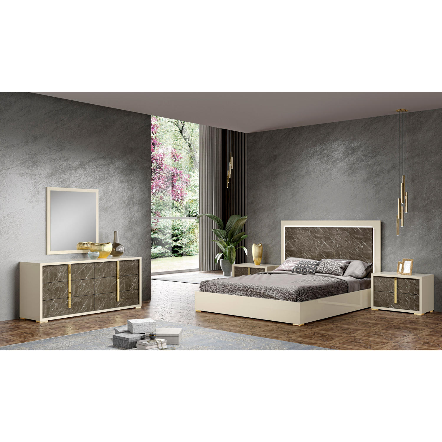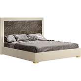 J and M Furniture Sonia Queen Bed in Pearl Metallic & Brown & Cream Marble Look