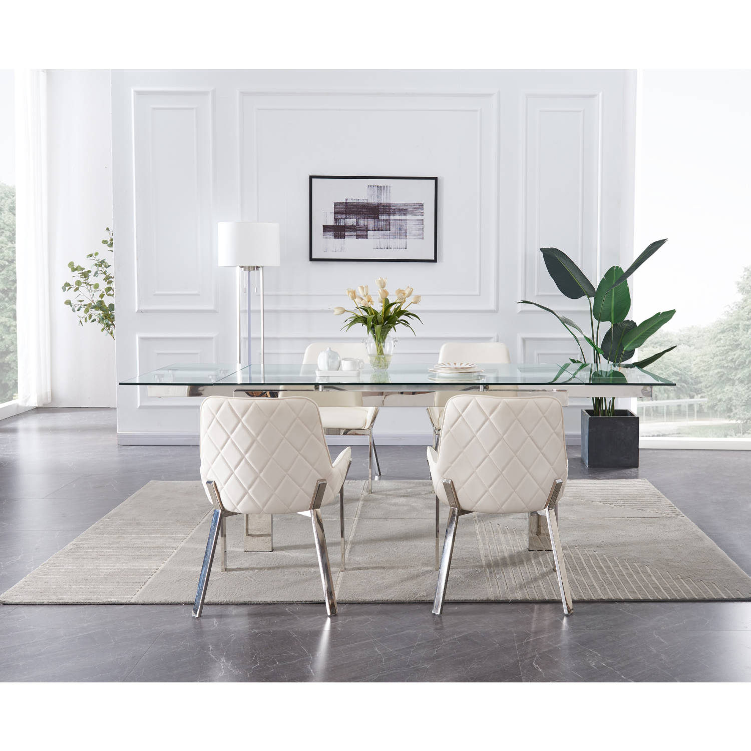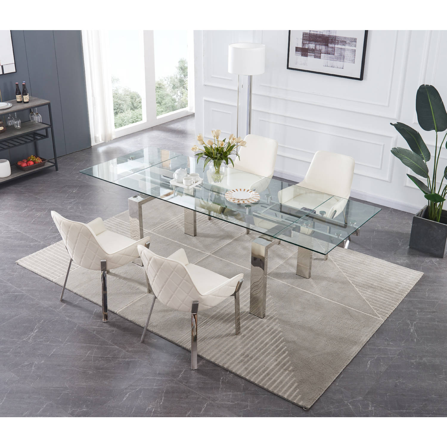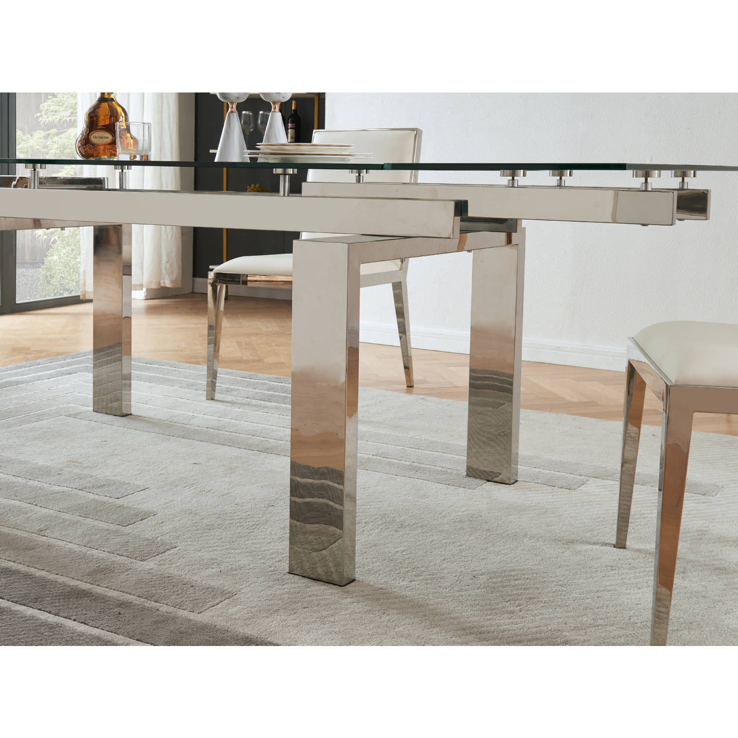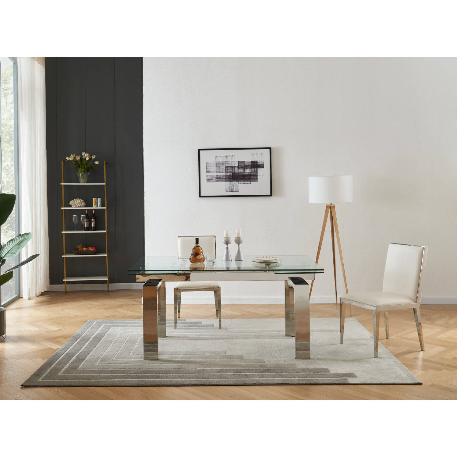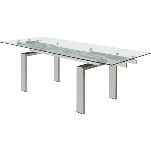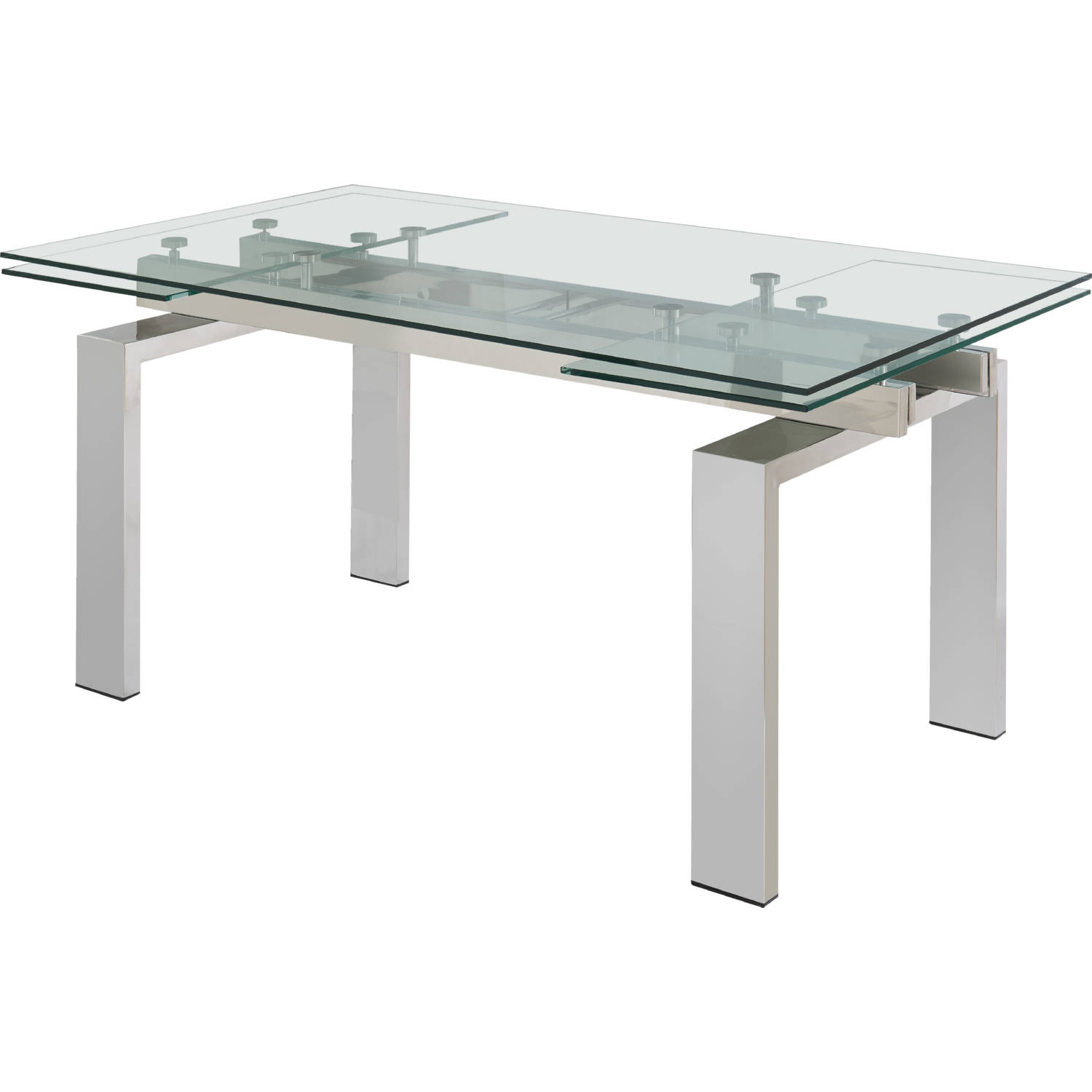 J and M Furniture 18872 Moda 63" Extension Dining Table Glass Stainless Steel