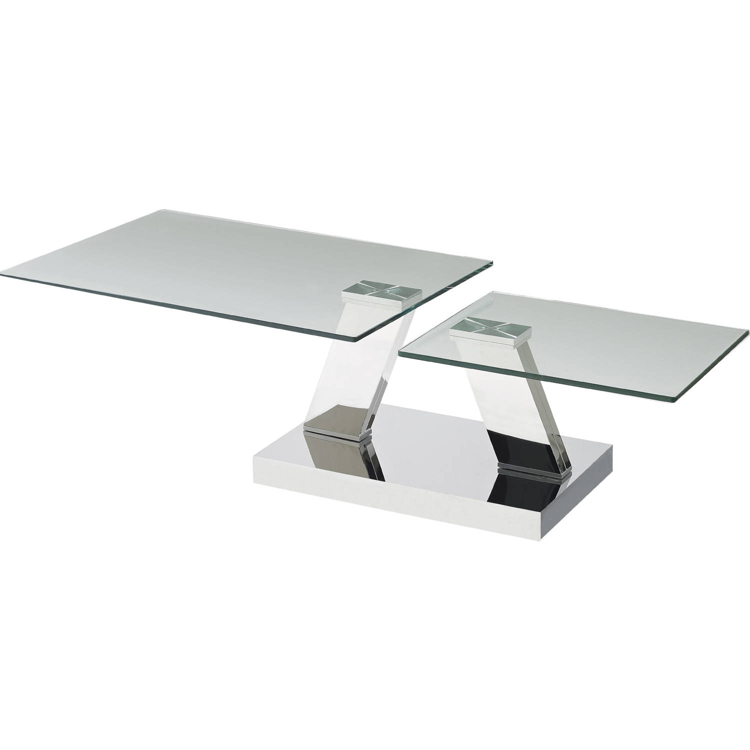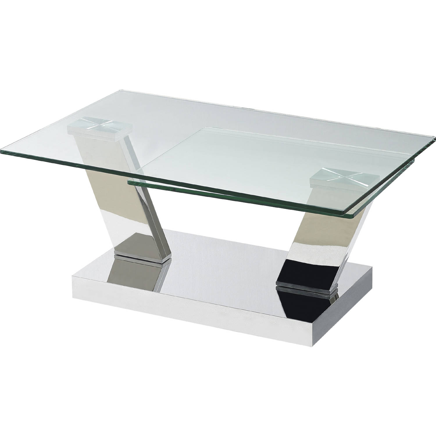 J and M Furniture Houston Coffee Table in Tempered Glass & Polished Steel