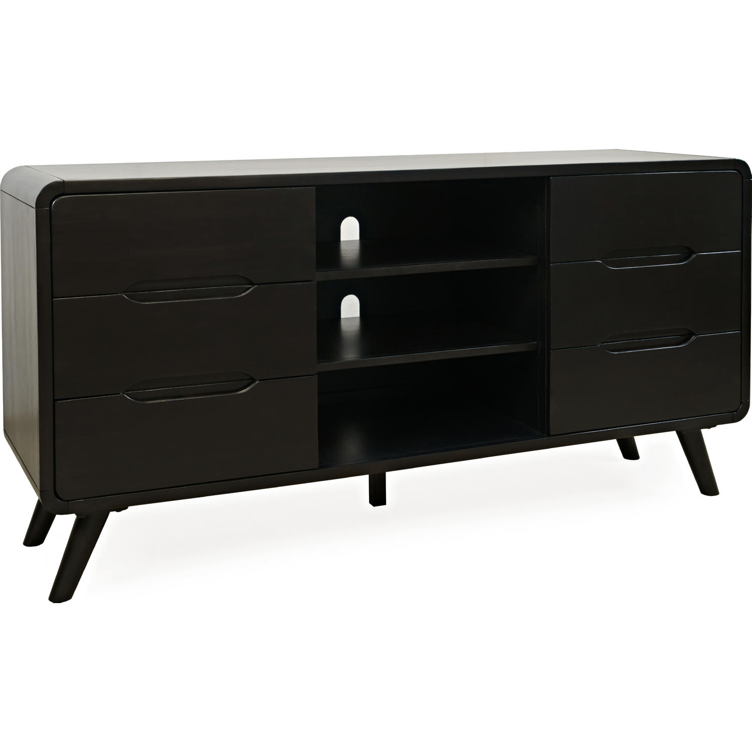 Jofran Marlowe Curved 64" TV Stand Media Console in Dark Brown Acacia Wood