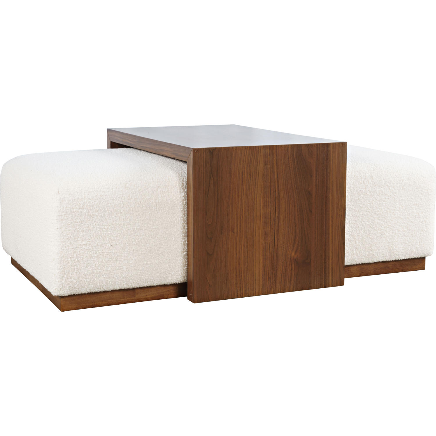 Jofran Hudson 48" Sliding Ottoman & Coffee Table with Casters in Ivory Boucle & Wood