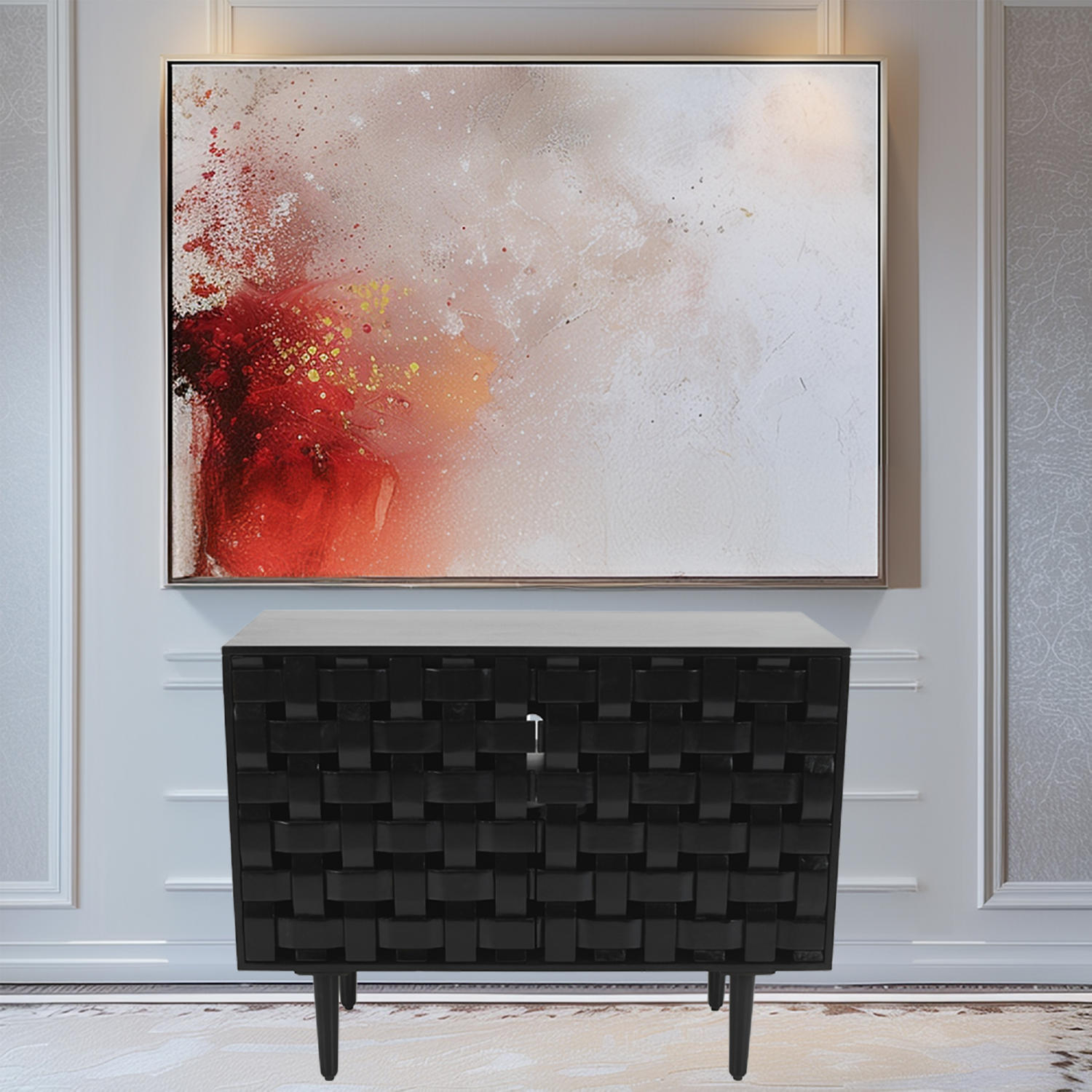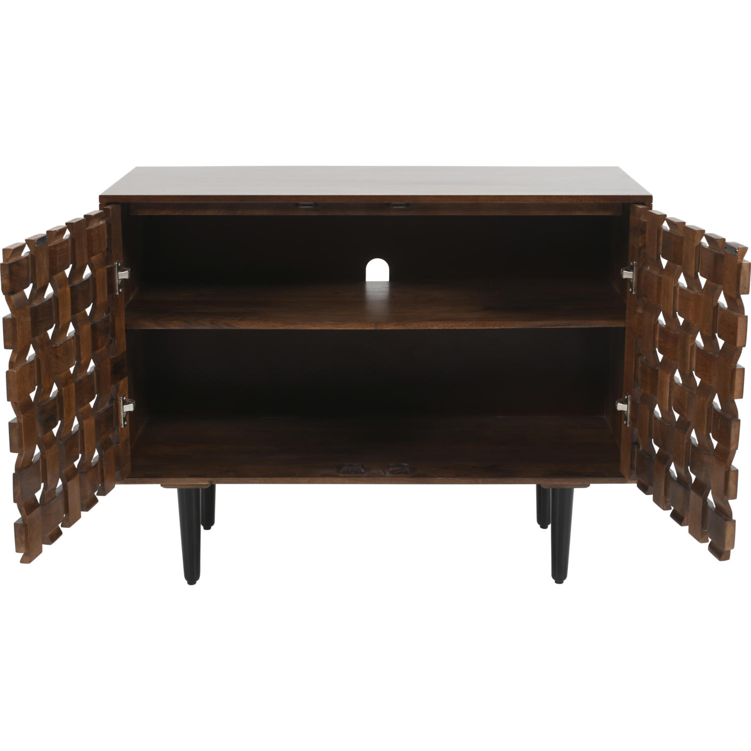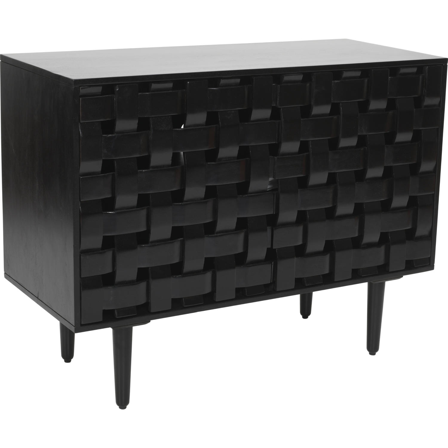 Jofran Trent 42" Carved Woven Sideboard Cabinet in Black Mango Wood