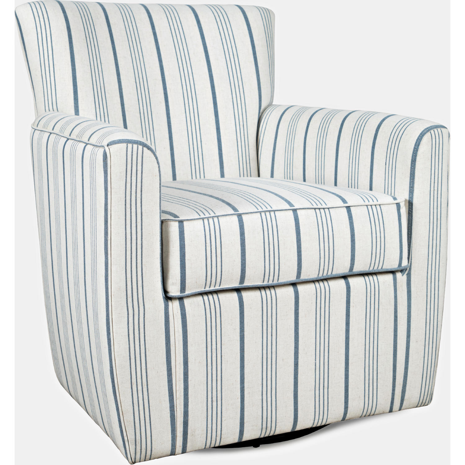 Jofran Blakely Swivel Accent Chair in Blue Stripe Fabric