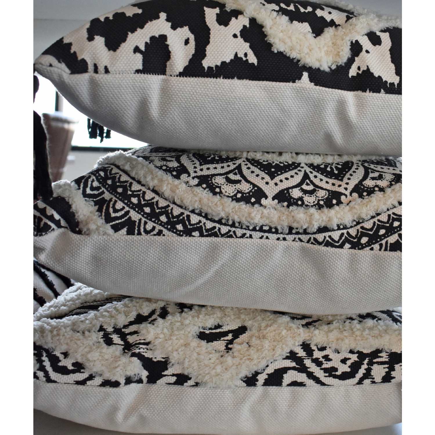 Lea Unlimited Morocco Cording Embroidery Throw Pillow in Black Canvas