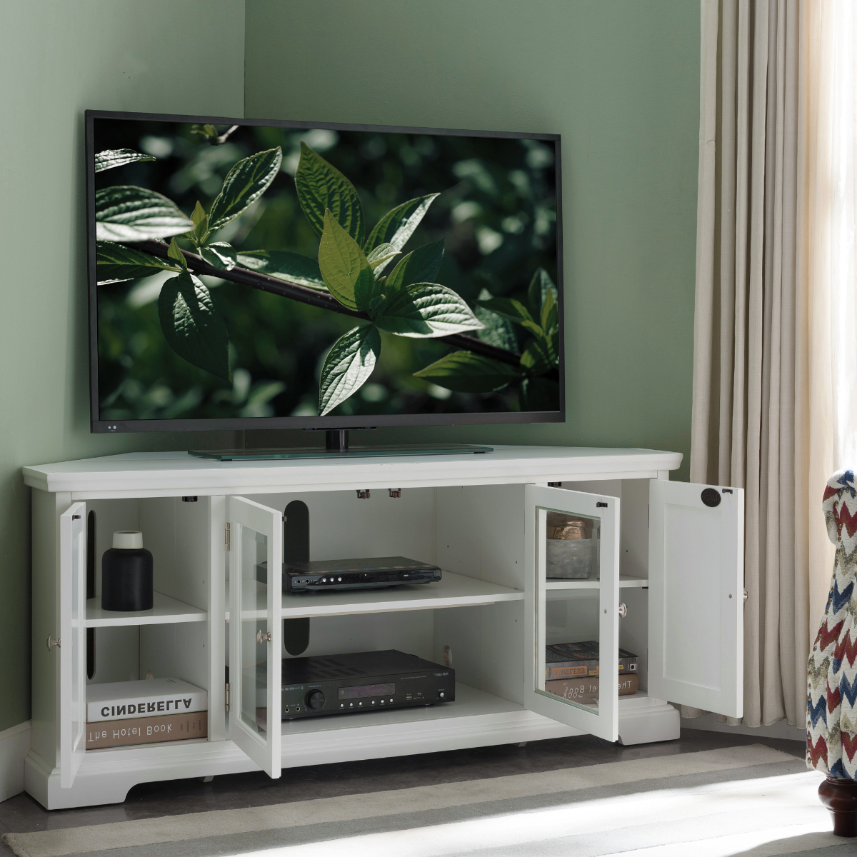 Leick Furniture Cottage White 57" Corner TV Stand Console
