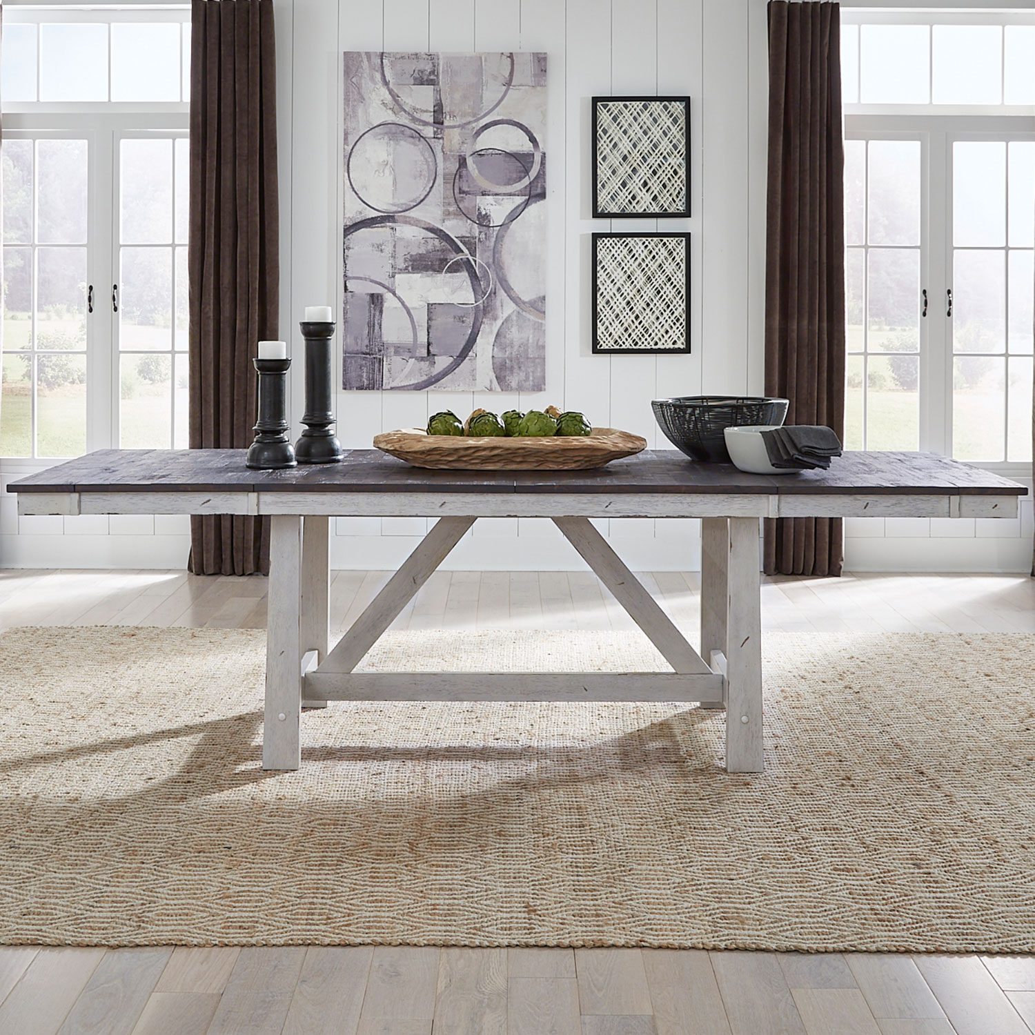 Liberty Furniture Farmhouse 102" Trestle Dining Table in Distressed White & Wood