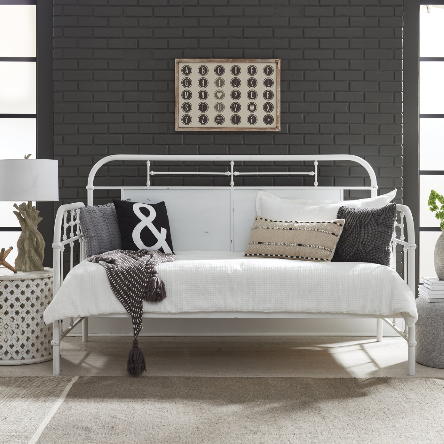 Liberty Furniture Vintage Series Twin Metal Day Bed in Distressed Antique White