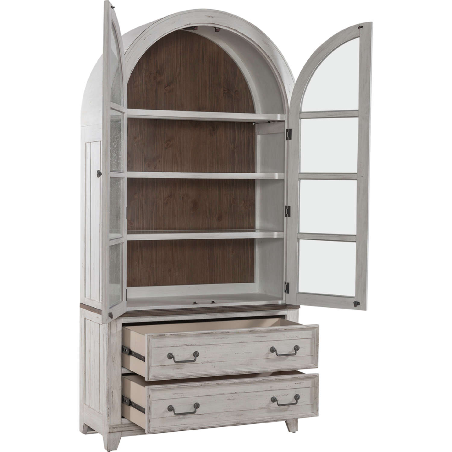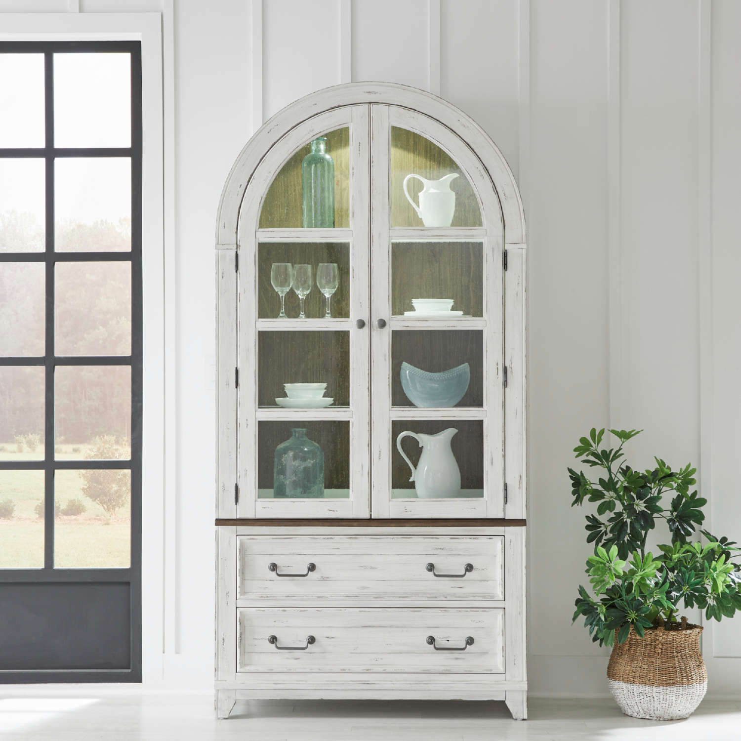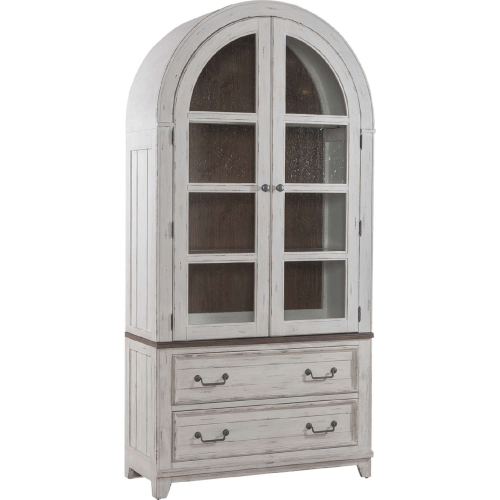 Liberty Furniture 237-DR-CC River Place Curio Cabinet Distressed White Brown Seeded Glass