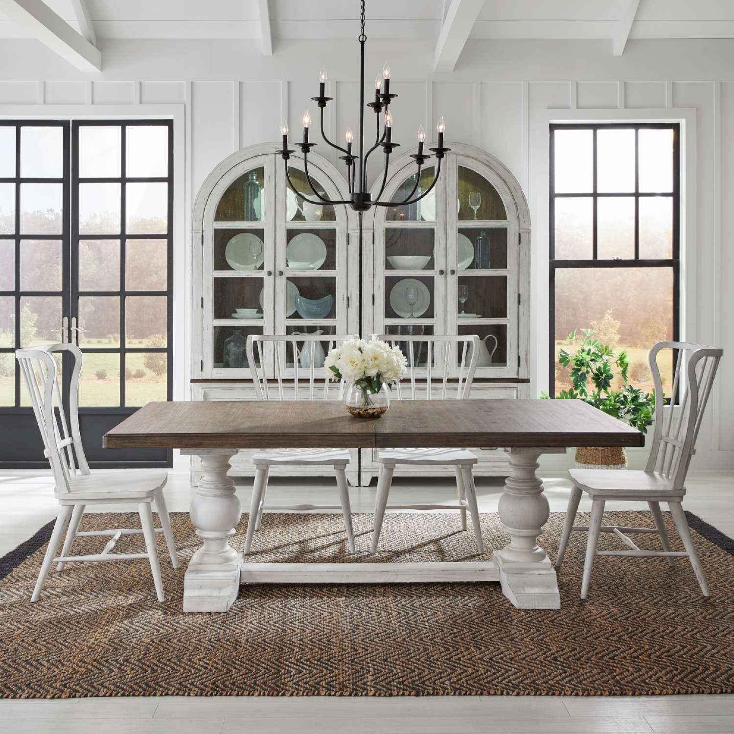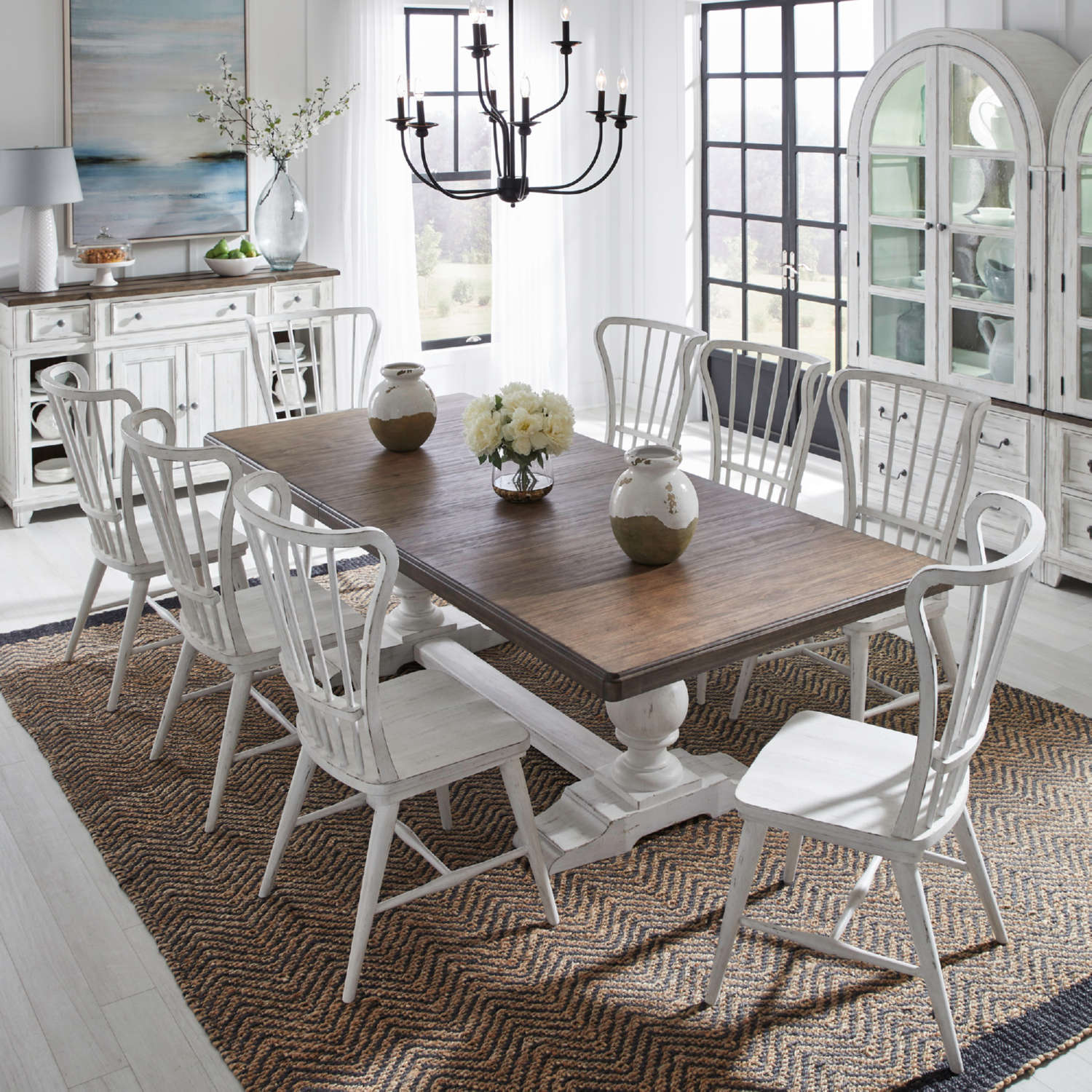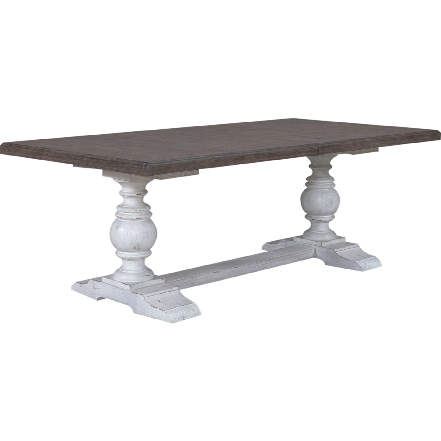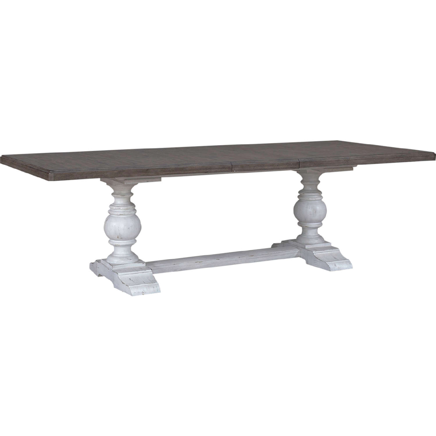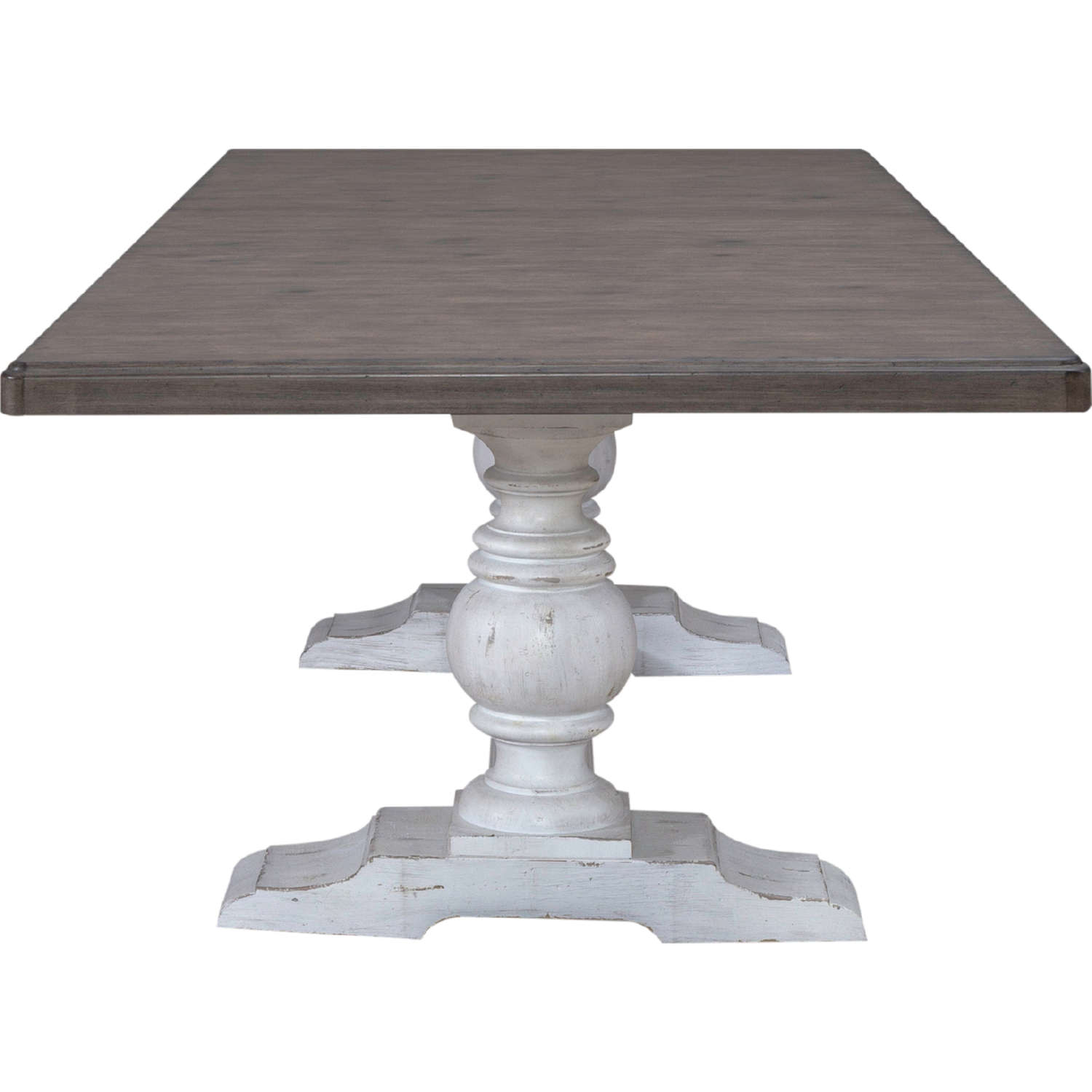 Liberty Furniture River Place 102" Trestle Dining Table in Distressed White & Tobacco Brown Finish