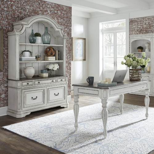 Liberty Furniture 244-HOJ-3DH Magnolia Manor Desk Hutch Set Antique White