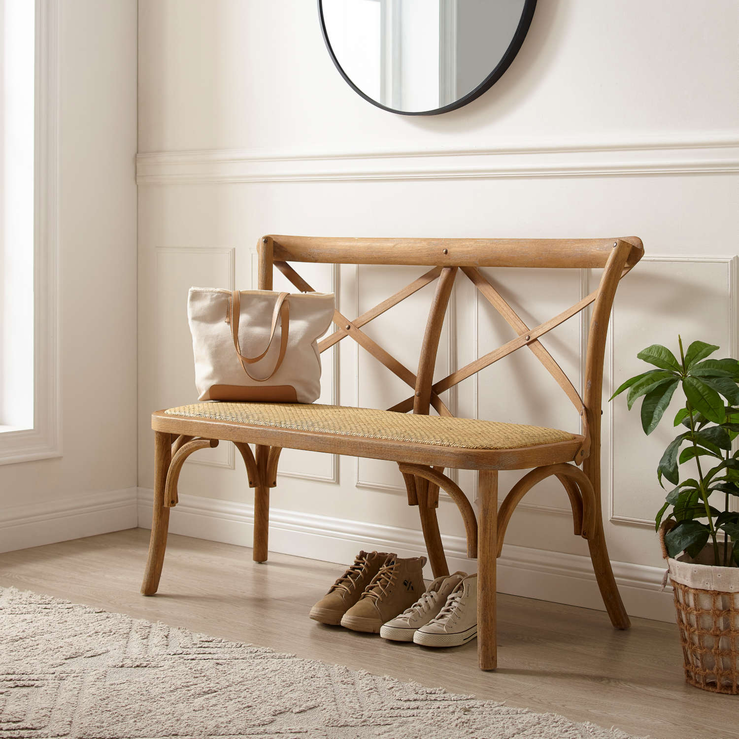 Linon Conelly Dining Bench in Brown Bentwood & Rattan