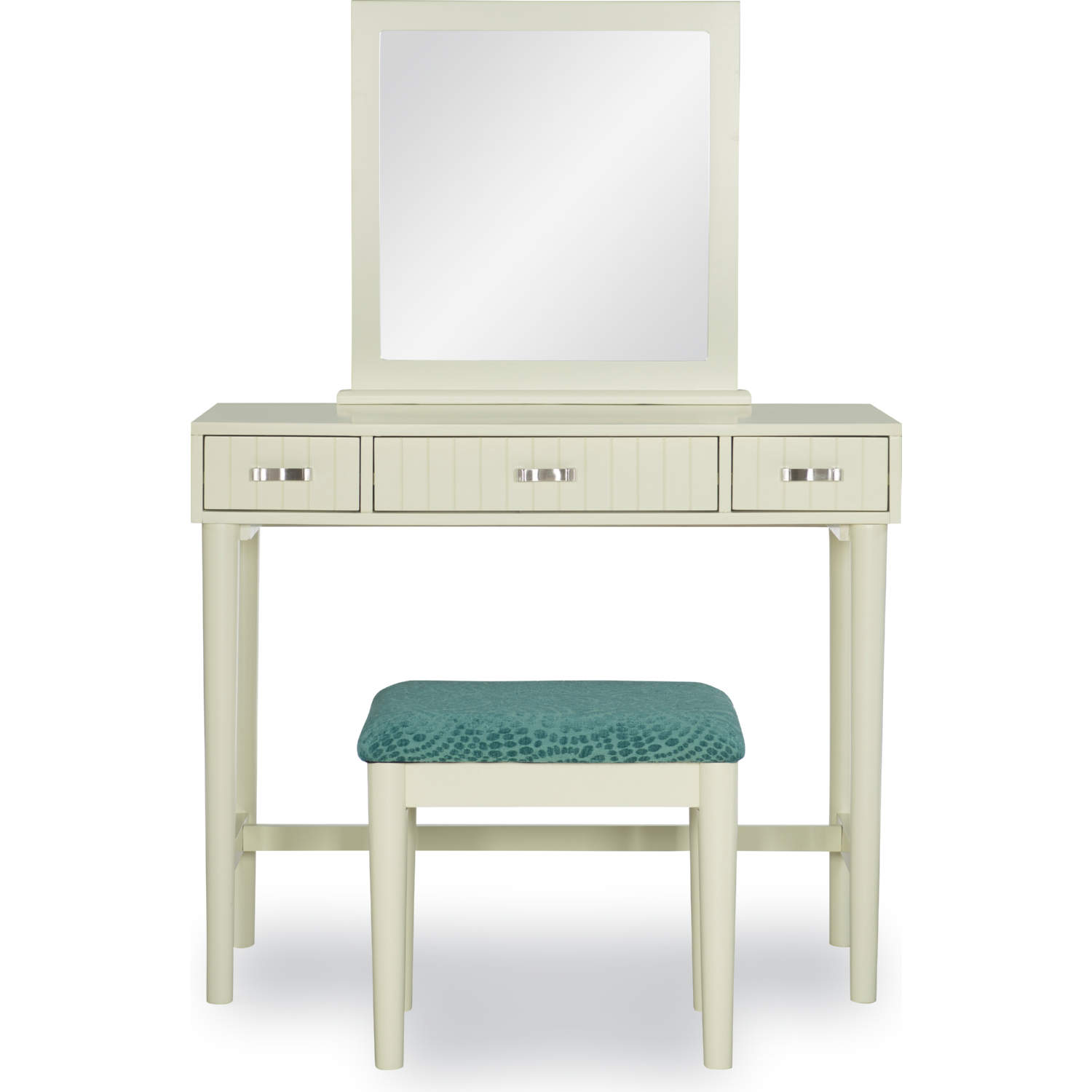 Linon VS065CRMABU Garbo Bedroom Vanity Set in Cream Wood & Green Fabric