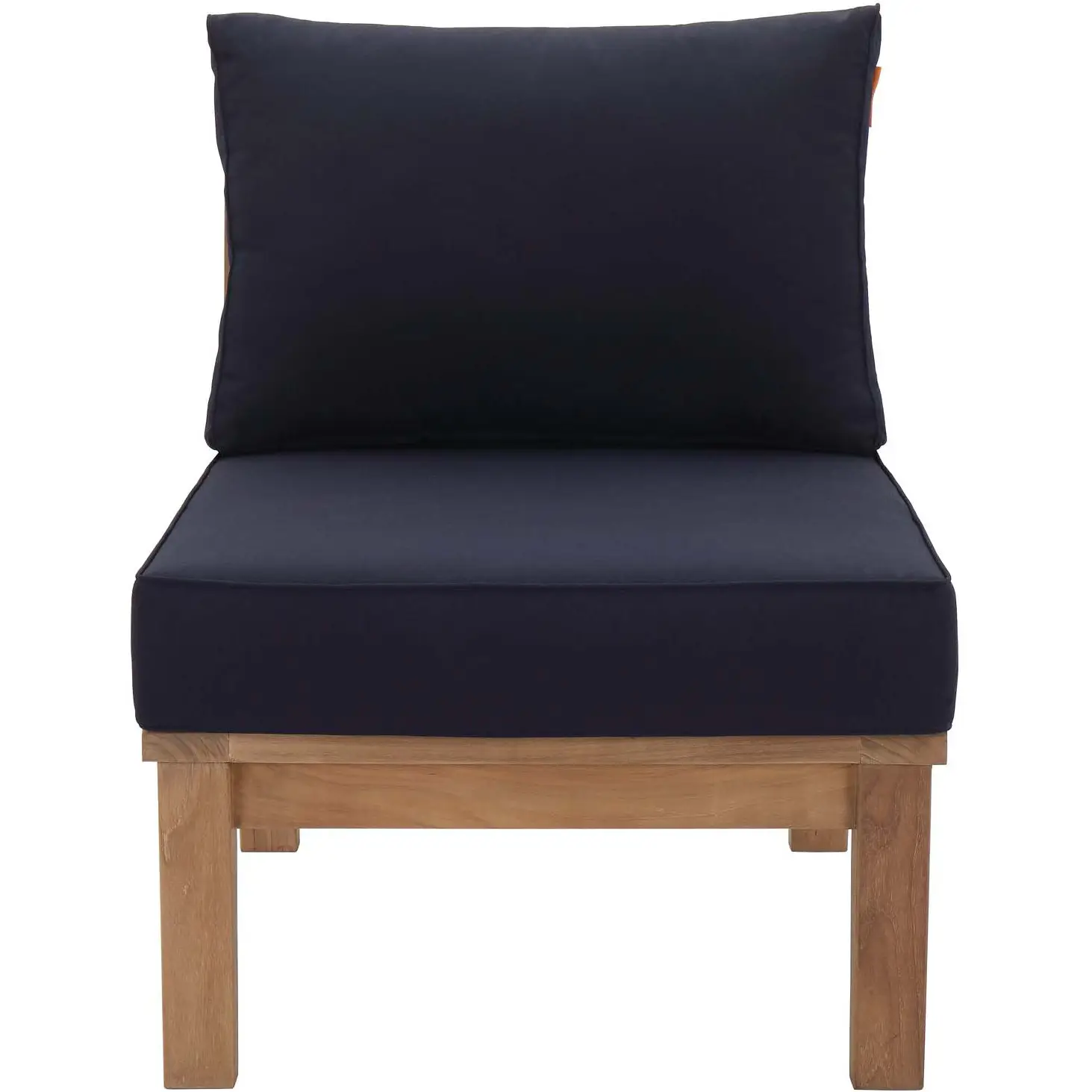 Modway EEI-1150-NAT-NAV-SET Marina Outdoor Armless Modular Sectional Sofa Unit Teak Navy Blue Fabric
