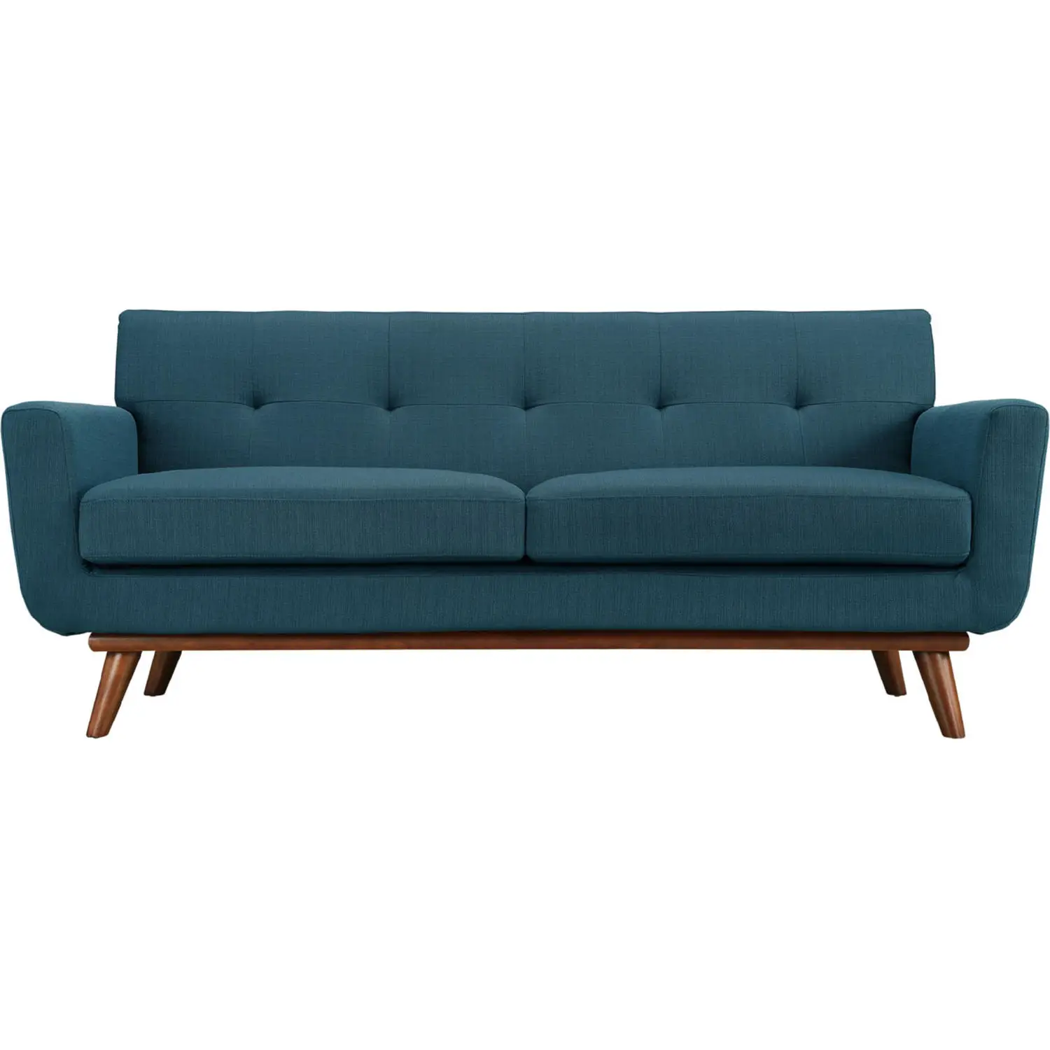 Modway EEI-1179-AZU Engage Loveseat Tufted Azure Fabric Cherry Wood Legs