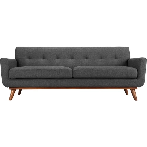 Modway Engage Sofa in Tufted Gray Fabric with Cherry Wood Legs