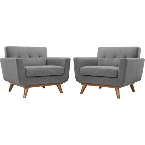 Modway EEI-1284-GRY Engage Armchair Tufted Gray Fabric Cherry ed Wood Legs Set of 2