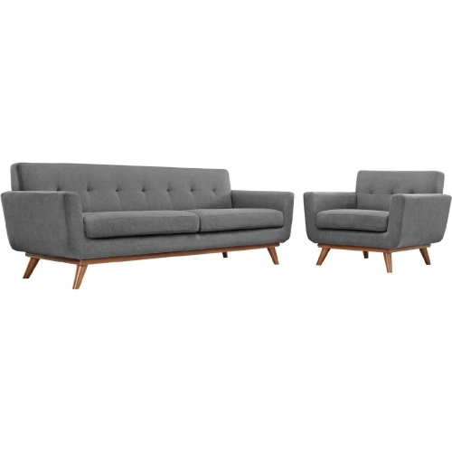 Modway EEI-1344-GRY Engage Sofa & Armchair Set Tufted Gray Fabric Cherry Wood Legs