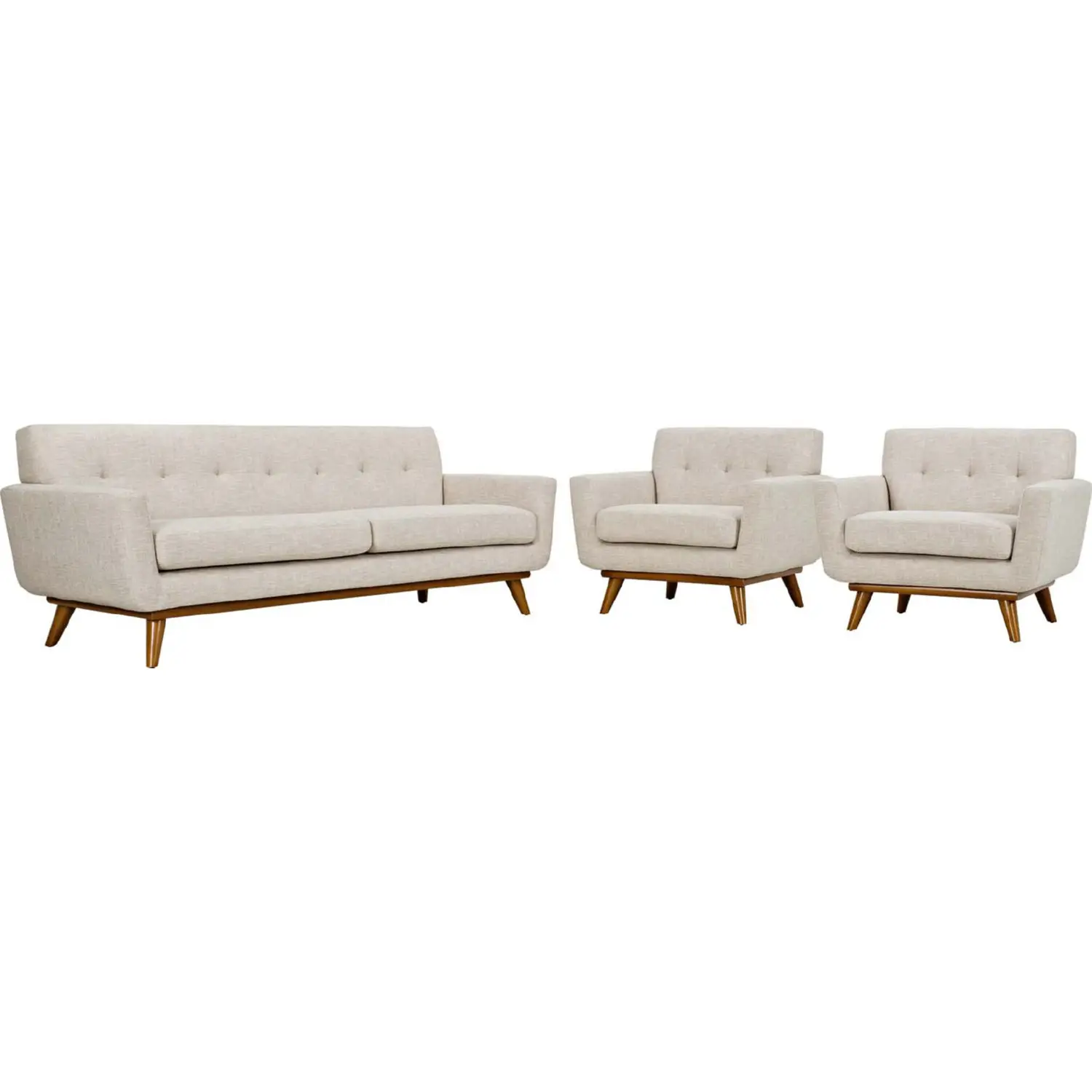 Modway Engage Sofa & 2 Arm Chair Set in Tufted Beige Fabric