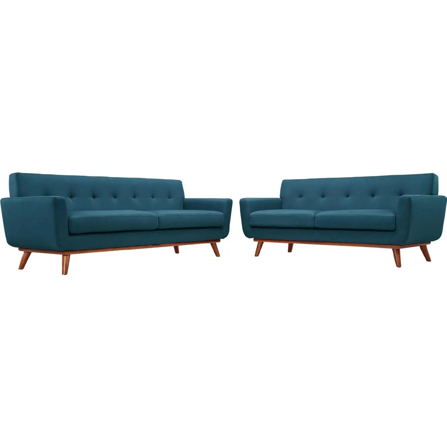 Modway EEI-1348-AZU Engage Sofa & Loveseat Set Tufted Azure Fabric Cherry Wood Legs