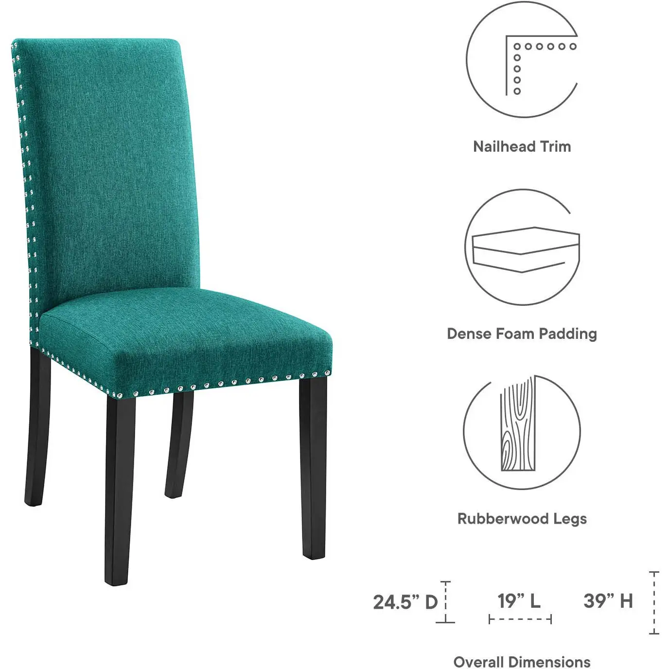 Modway EEI-1384-TEA Parcel Dining Chair Teal Fabric Nailhead